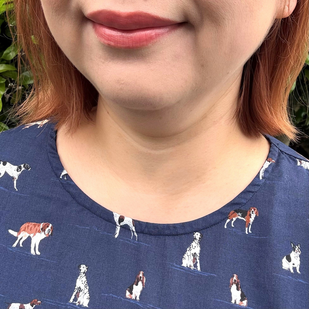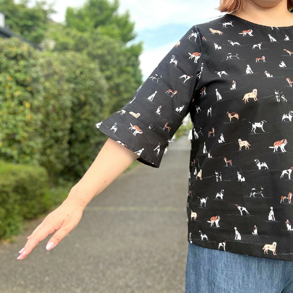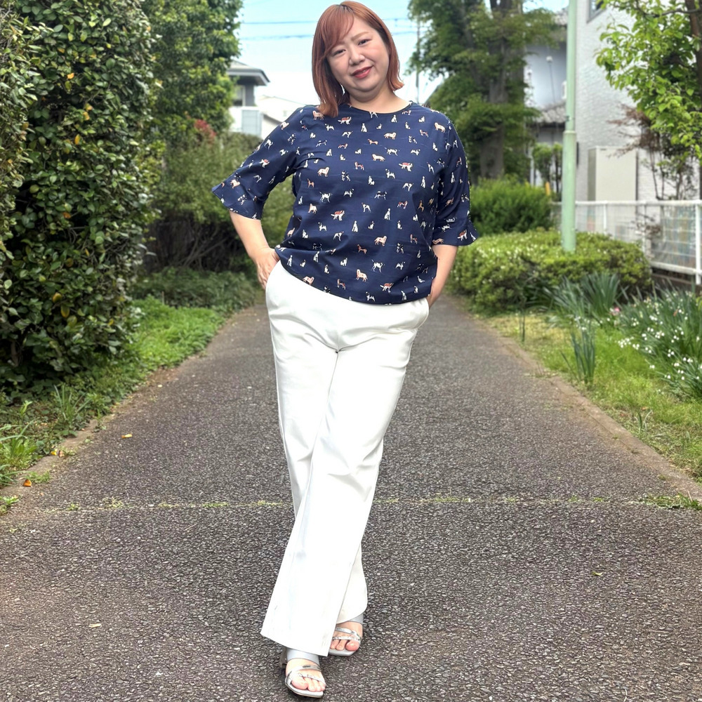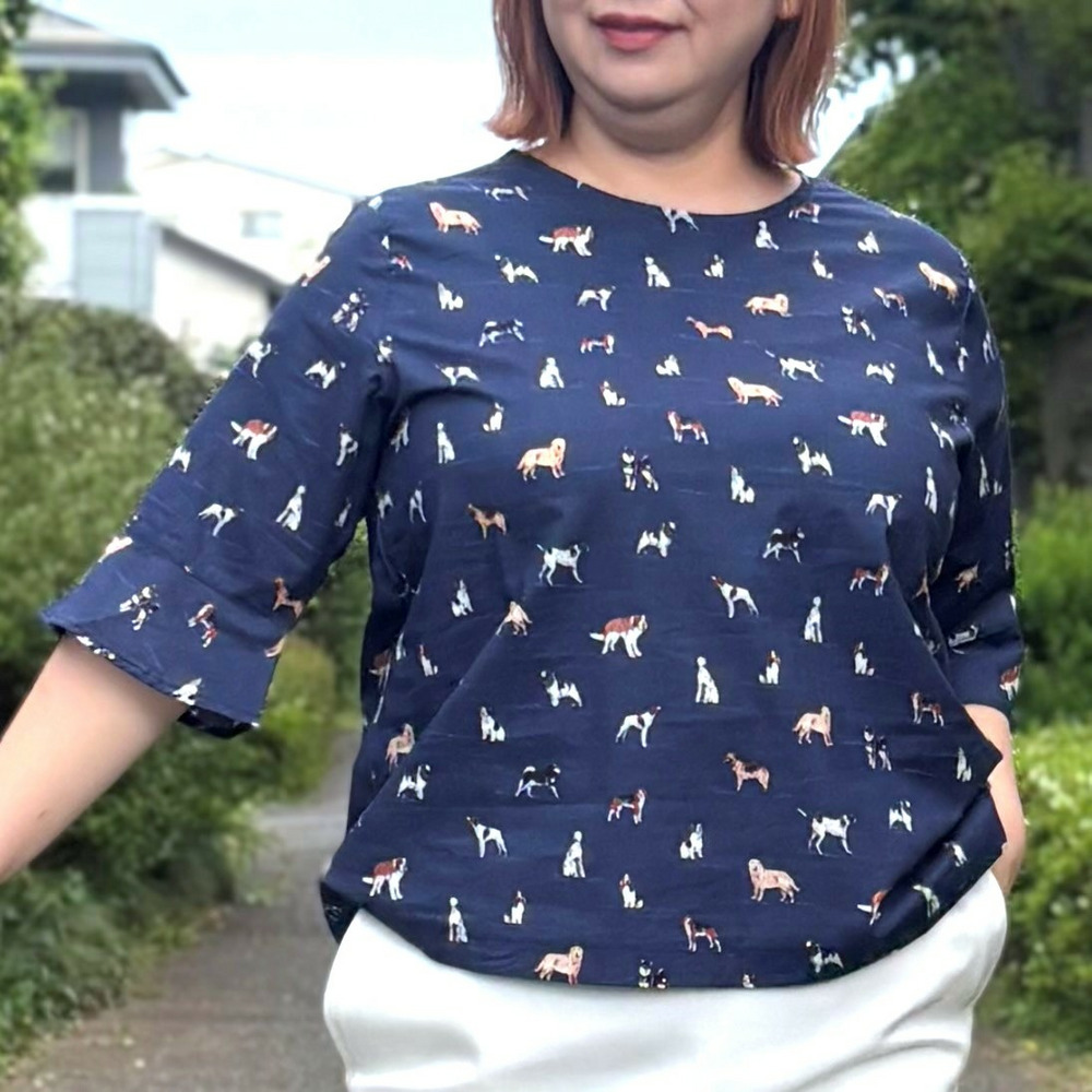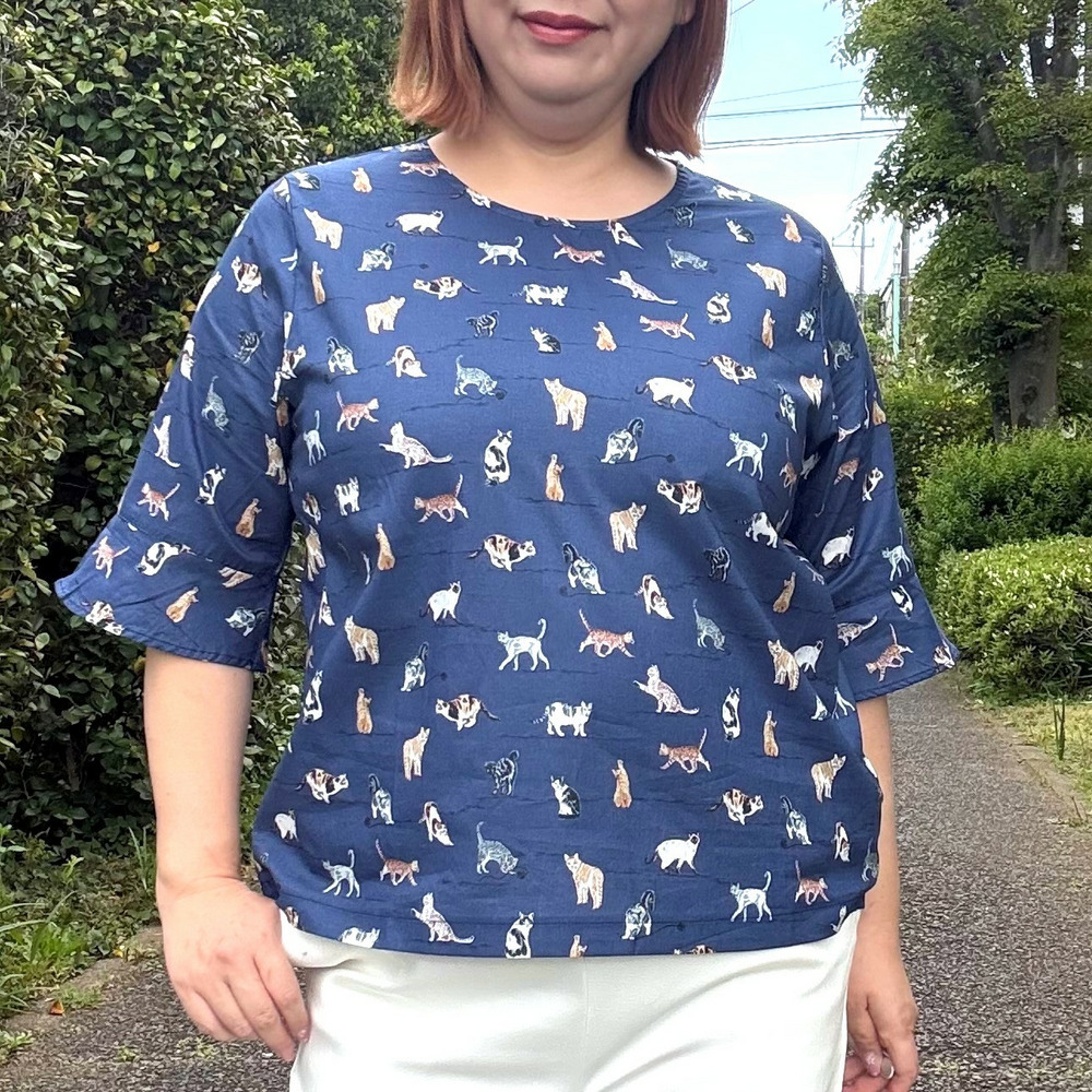 グラフィカルに描かれた犬や猫モチーフが目を惹く、大人可愛いブラウス。