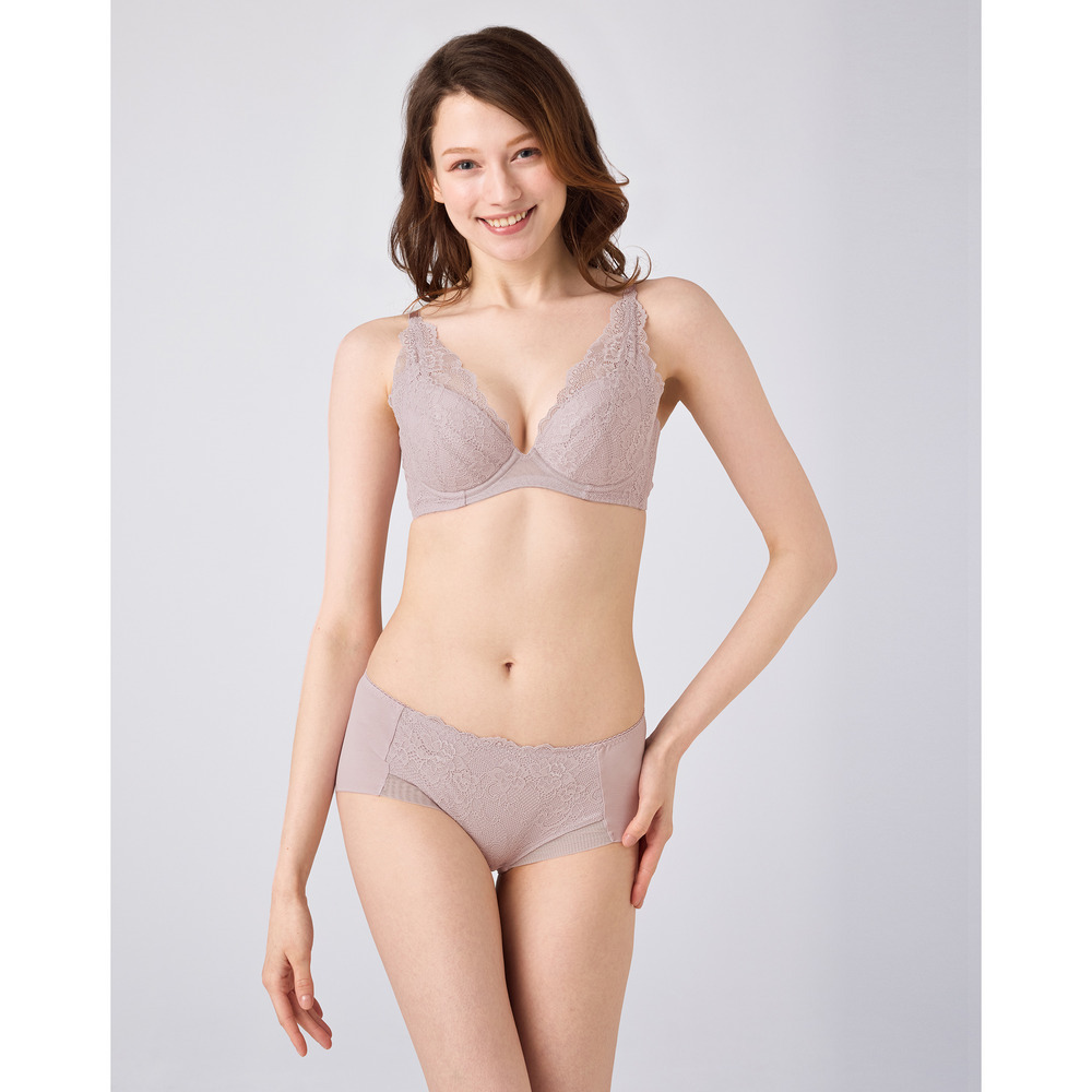 フロント中心部のワイヤーを薄くフラットにし、外側に反らせた“NEWエンジェルワイヤー”を使用。肌にくいこみにくく、痛くなりにくくなっています。