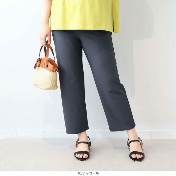 クロップド丈で足元が軽やかに見え、スッキリとした印象に仕上がります。