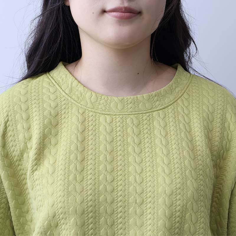 ふんわりとした膨らみ感のあるカットソー生地で、柔らかな着心地。