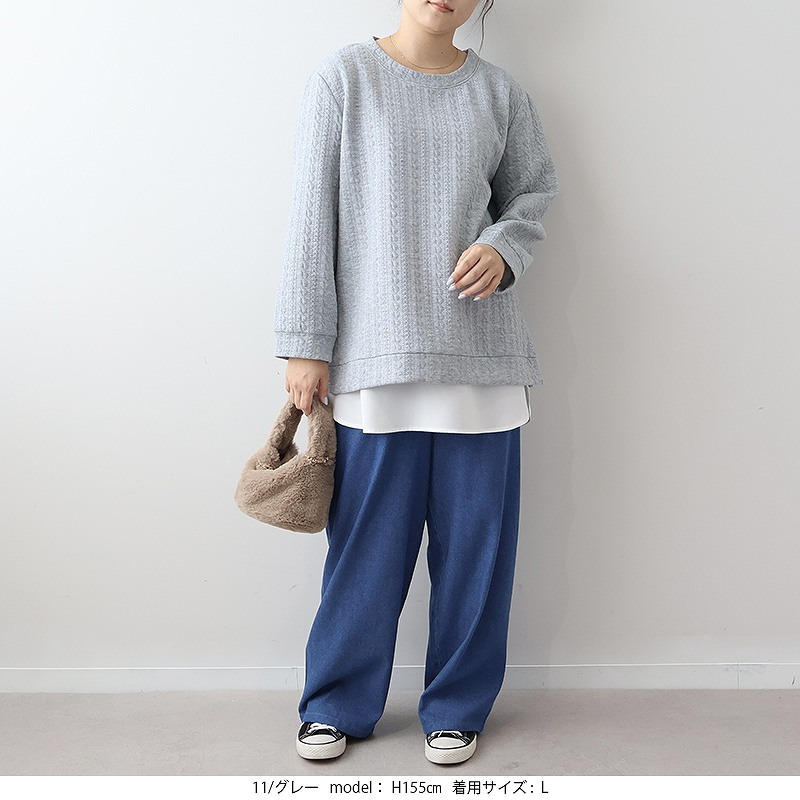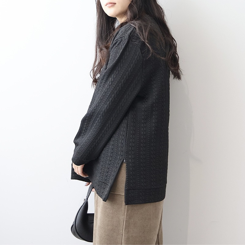 ケーブル柄が立体的で可愛いふくれジャガード素材のプルオーバーです。