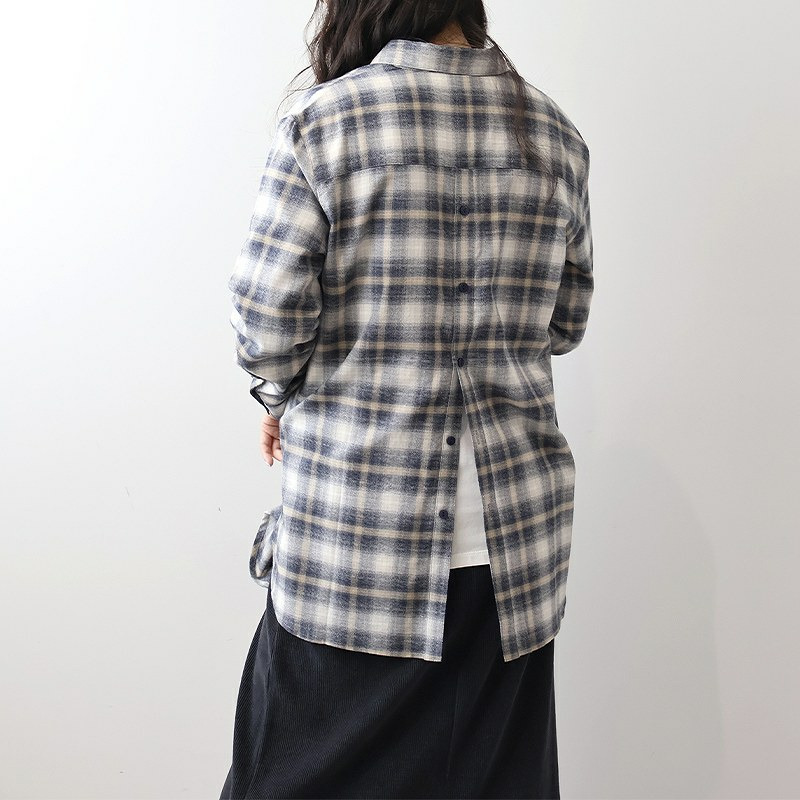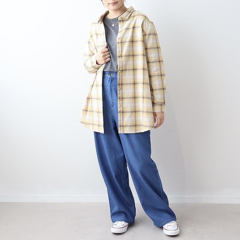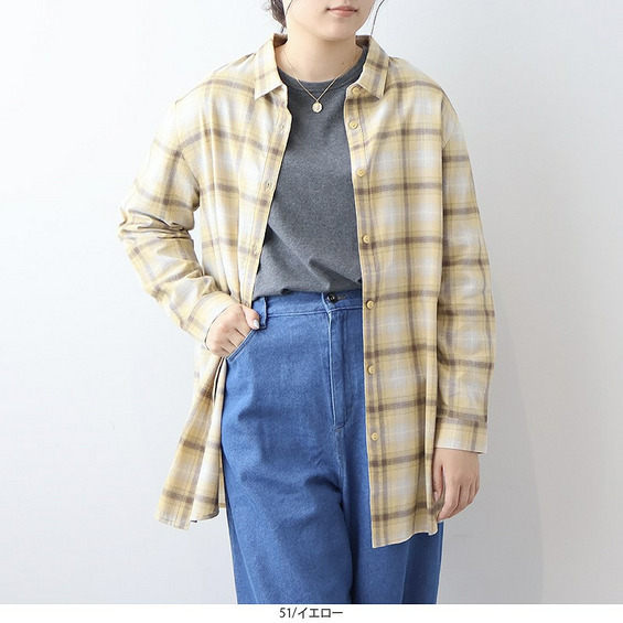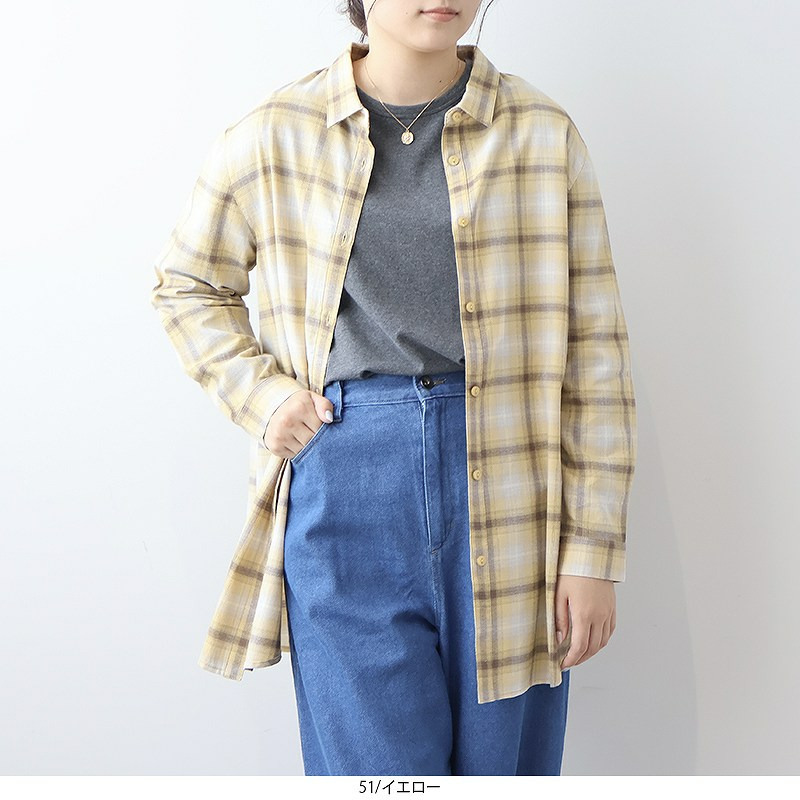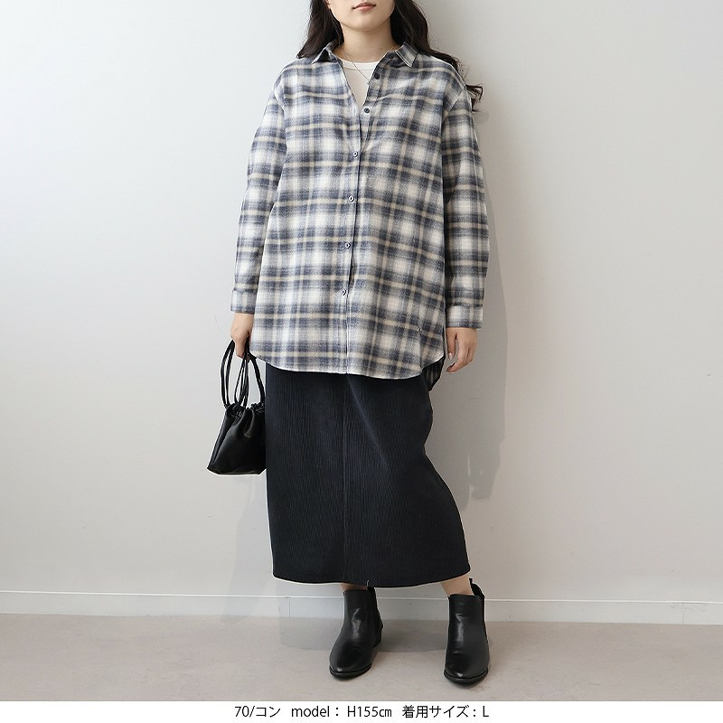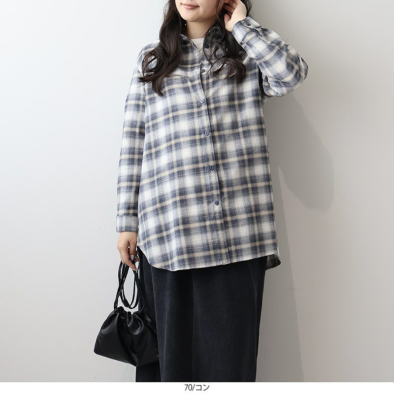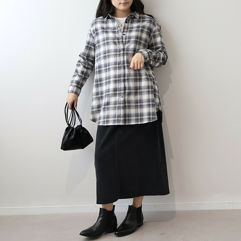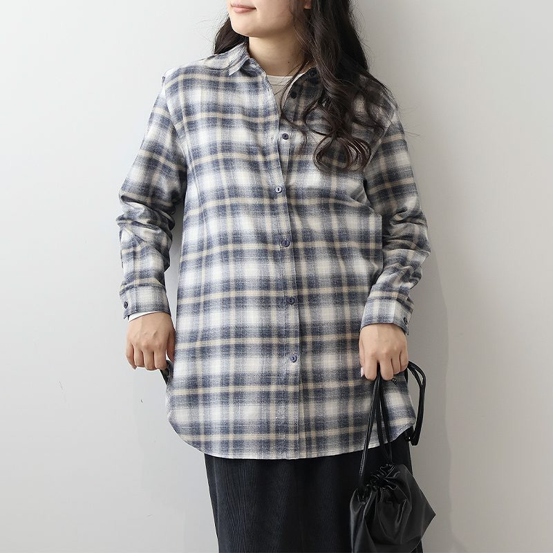 秋らしい落ち着いたカラーのオンブレーチェックが目を惹くロングシャツです。