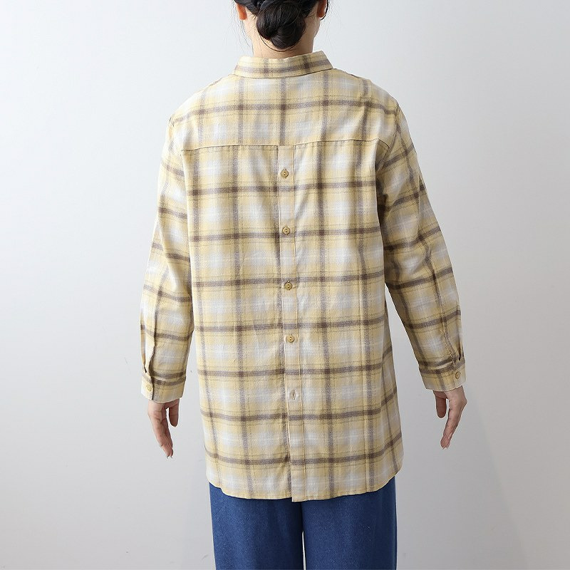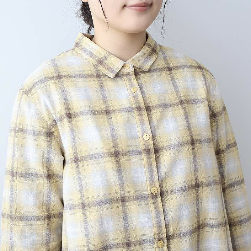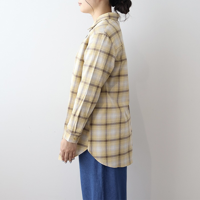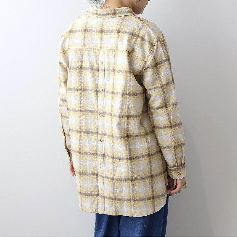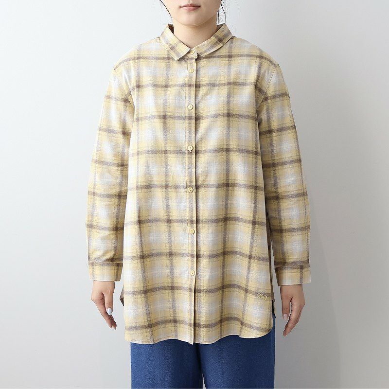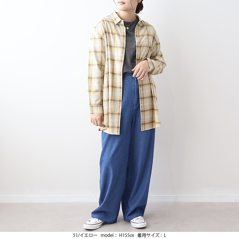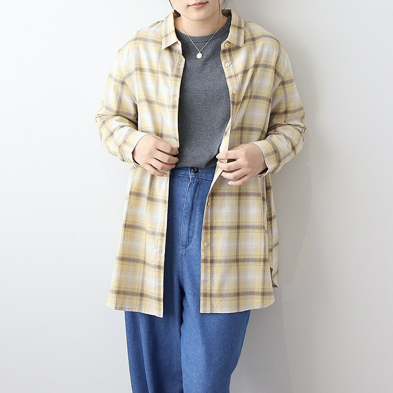 秋らしい落ち着いたカラーのオンブレーチェックが目を惹くロングシャツです。