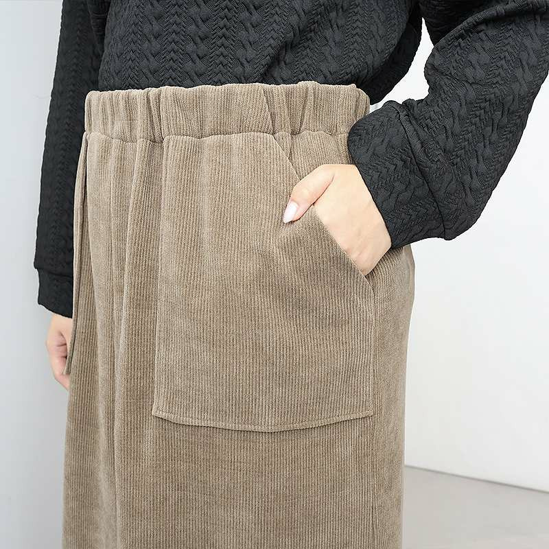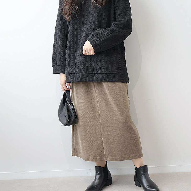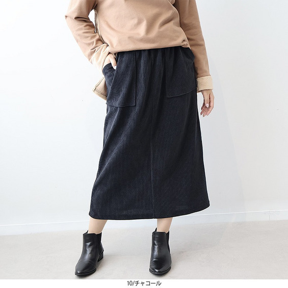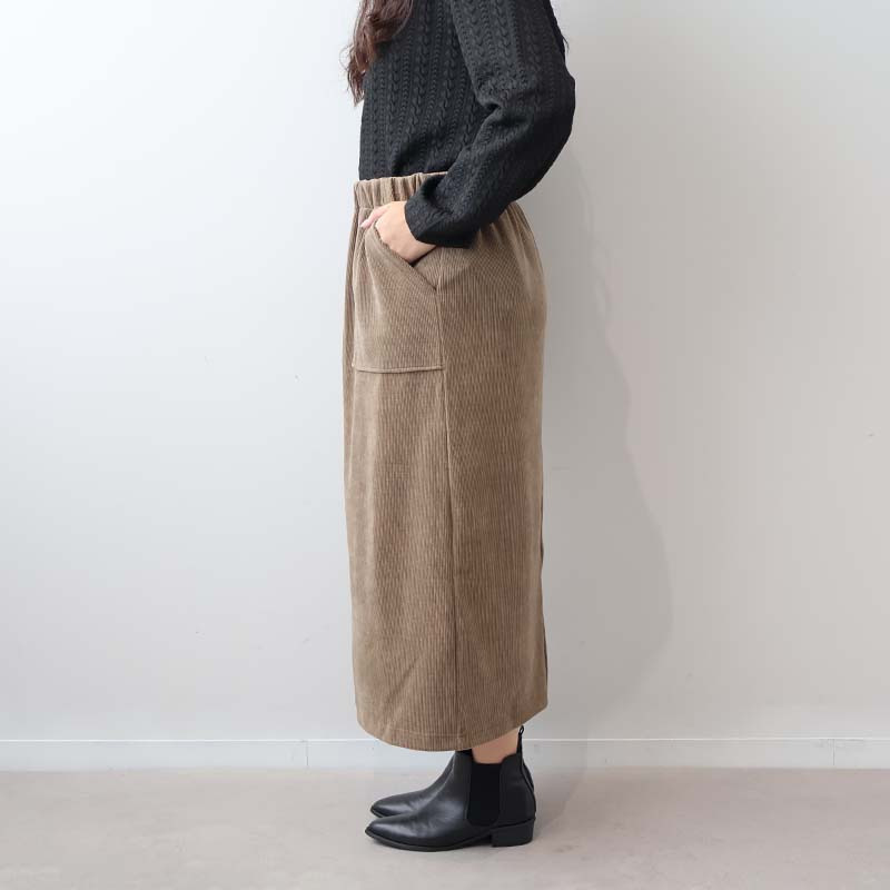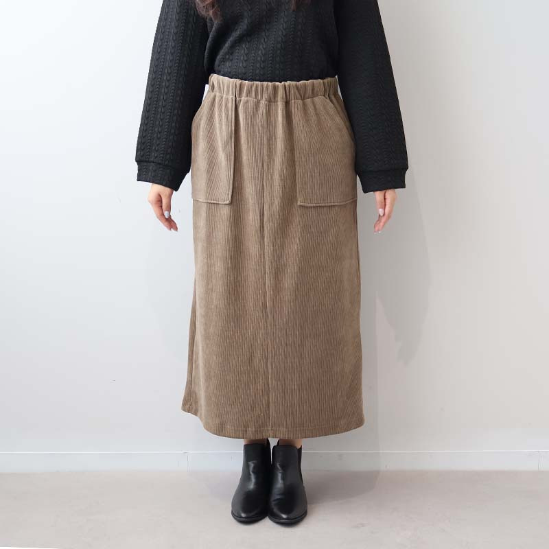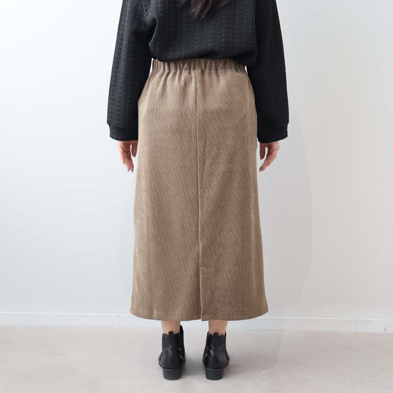 ストレッチ効果で楽ちん。すっきり細見えニットコールナロースカート