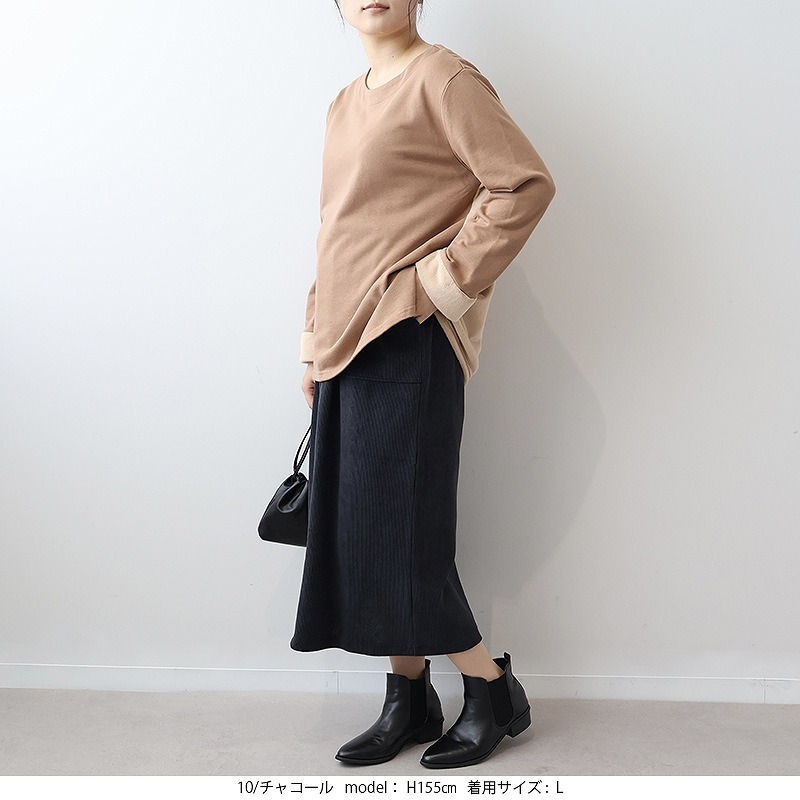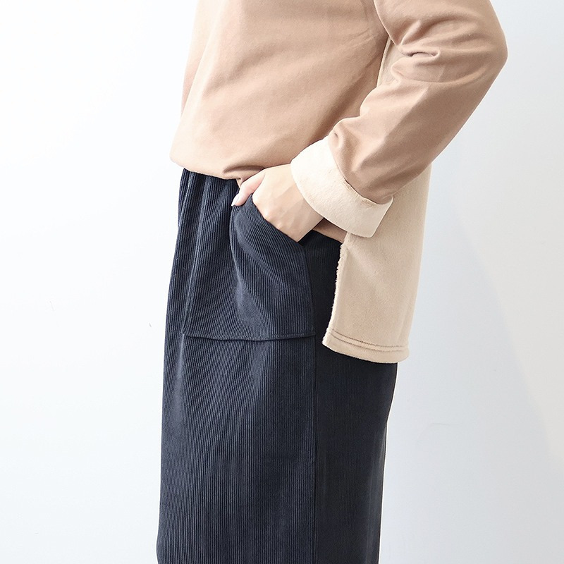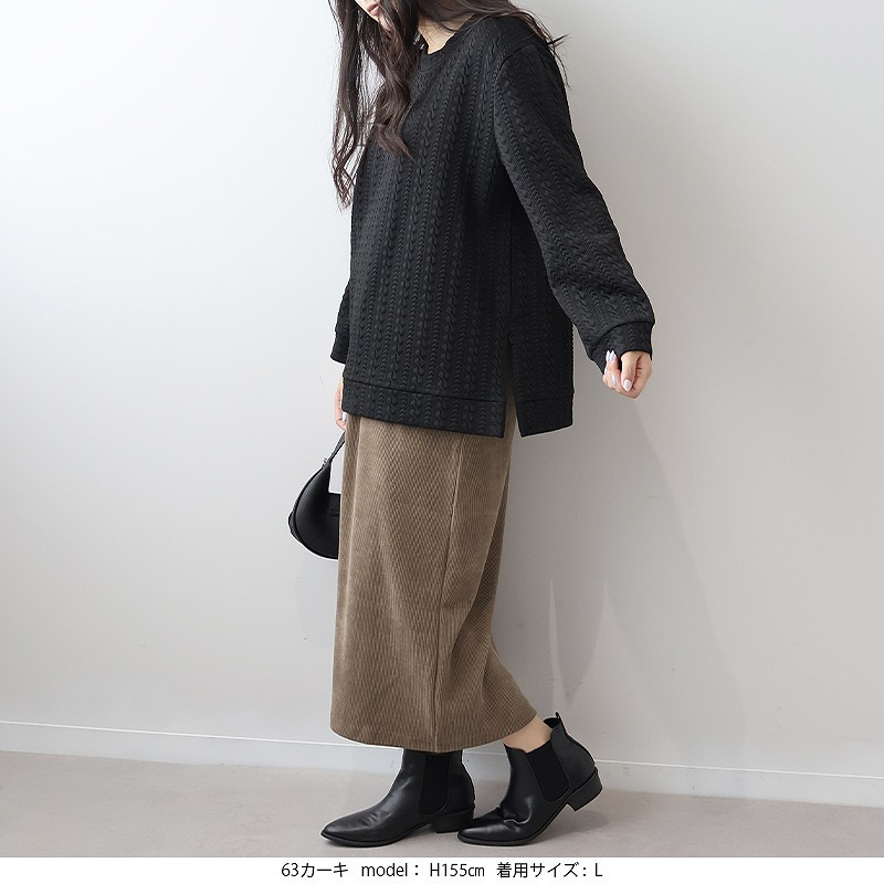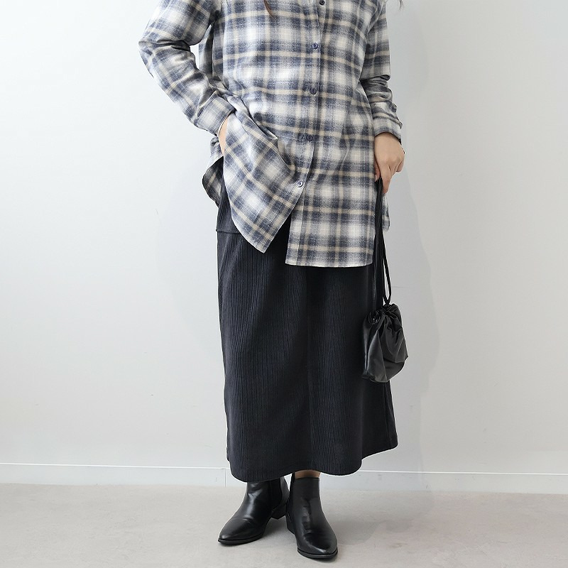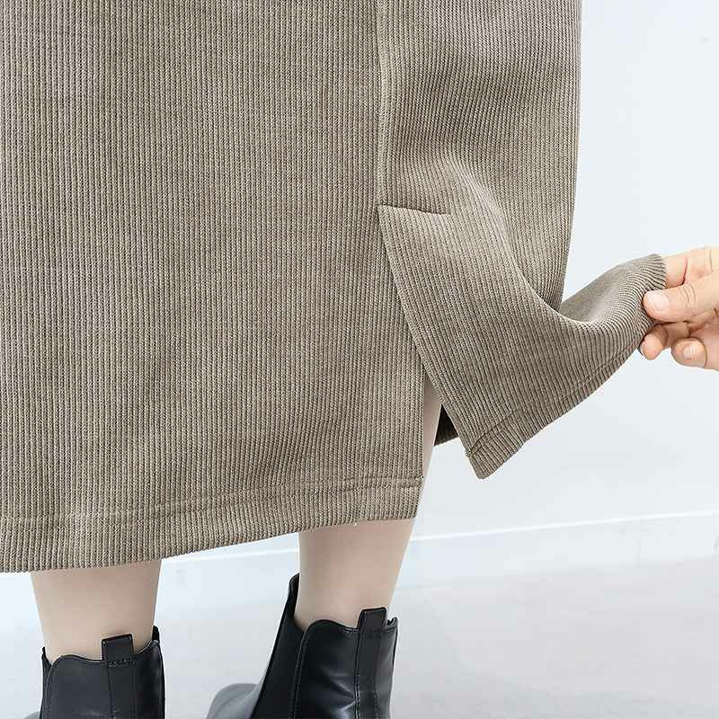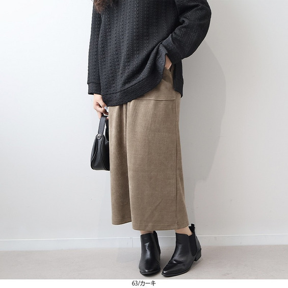 ストレッチ効果で楽ちん。すっきり細見えニットコールナロースカート