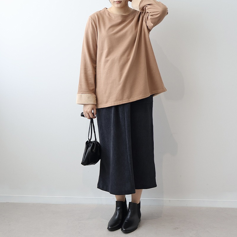 すっきりとしたIラインシルエットなので、ボリュームのあるニットや