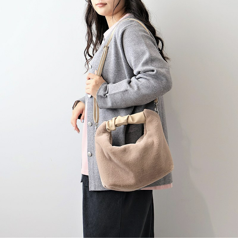 持つだけで秋冬のコーディネートが完成する、思わず触りたくなるふわふわエコファーが大人可愛い2WAYバッグ。