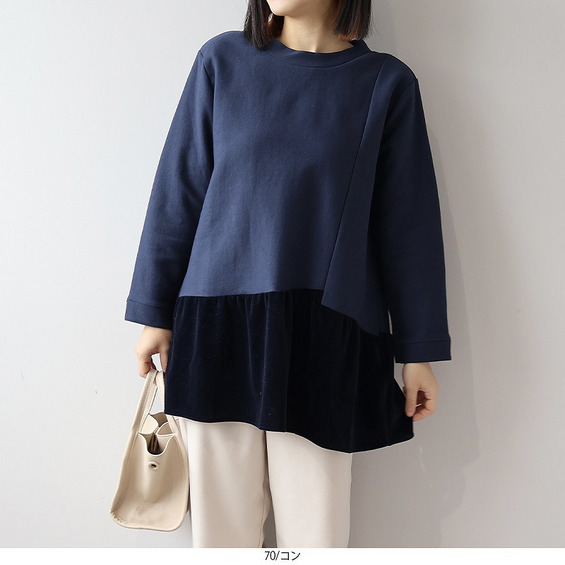 • 裏起毛スエットベロア切替えチュニックカットソー12
