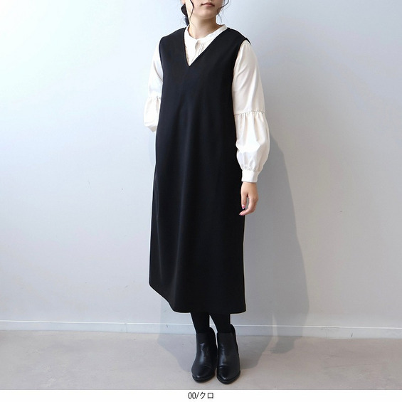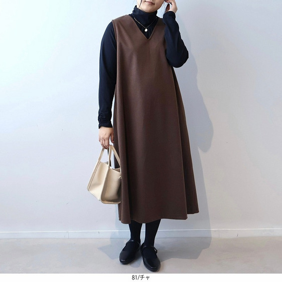 楽なのにきれい見え 柔らかニット Vネックジャンパースカート