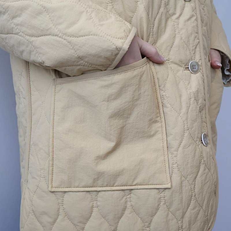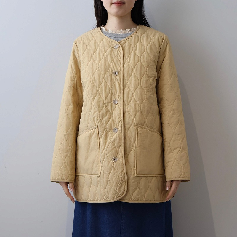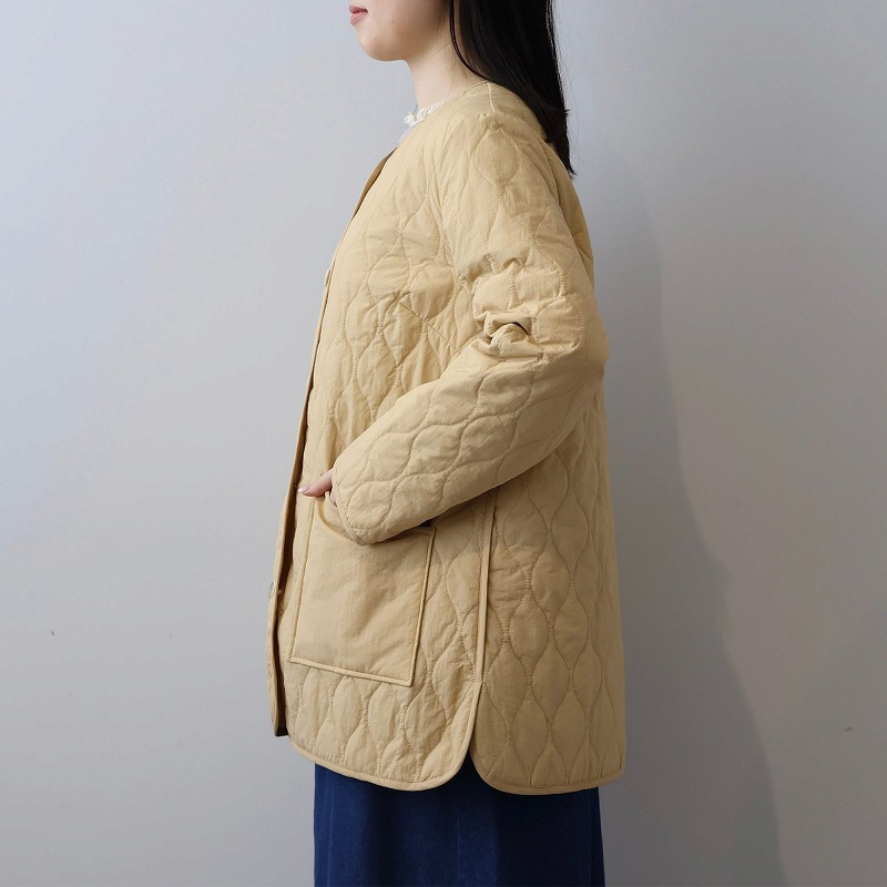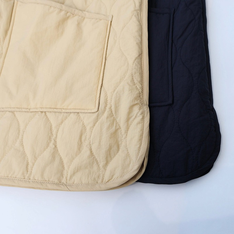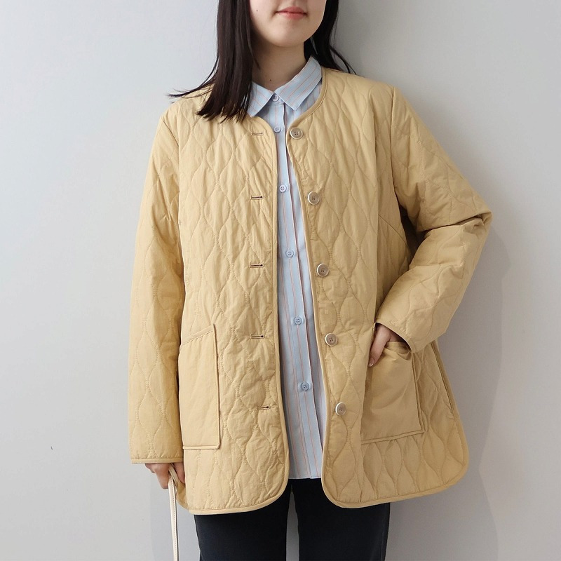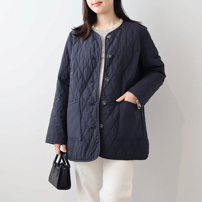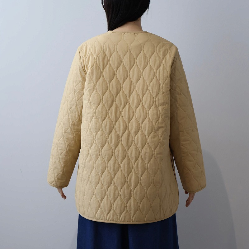 中綿には薄手で柔らかなタイプを選んでいるため、キルティングアウター特有の着膨れ感がなく、すっきりと着こなせます。