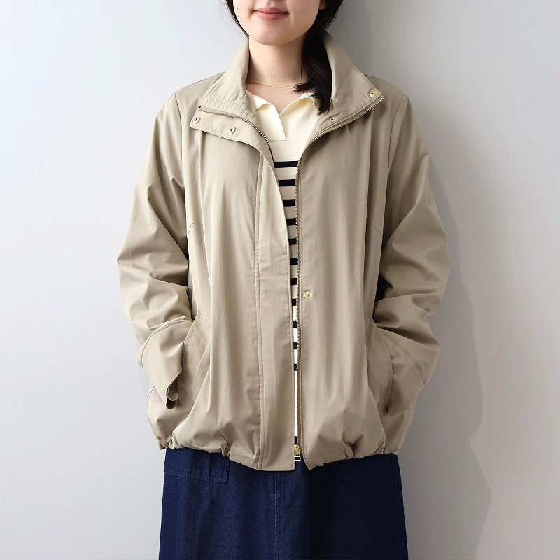 ブルゾンはカジュアルにもきれいめにも着こなせる、シンプルなスタンドカラーブルゾン。