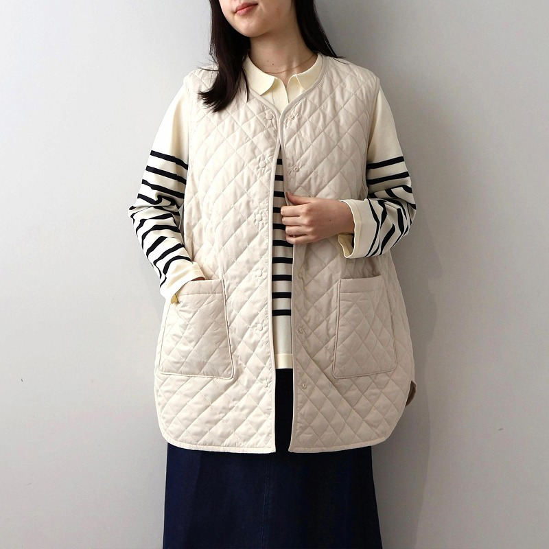 ベストは軽くて丈夫なタフタ素材に、中綿を合わせたキルティング仕様。