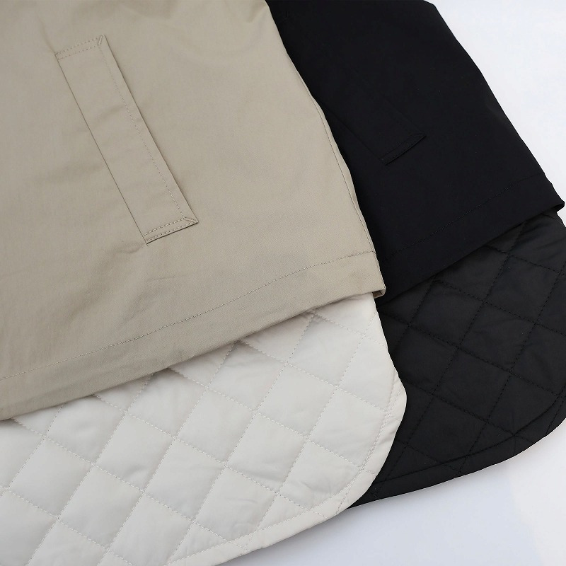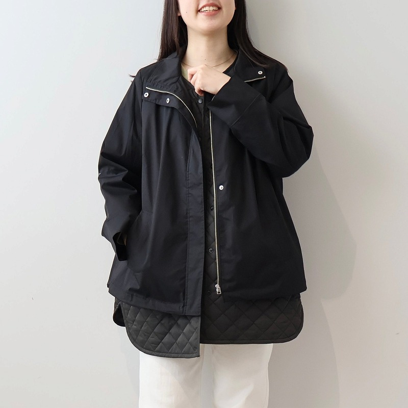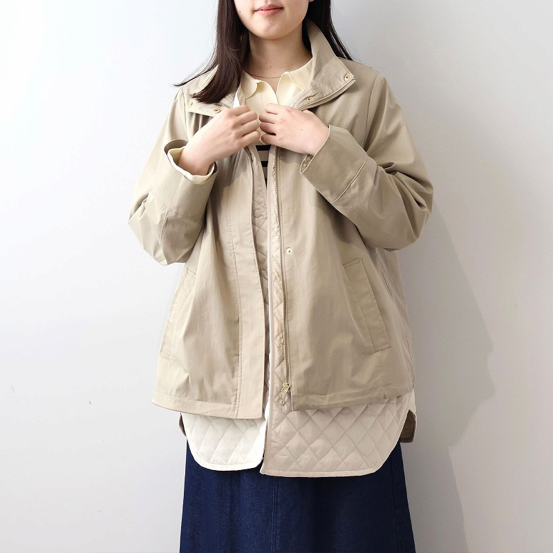 シンプルなツイルブルゾンと、上品なダイヤ柄のキルティングベストがセットになった、着回し力抜群のアンサンブルアウター。