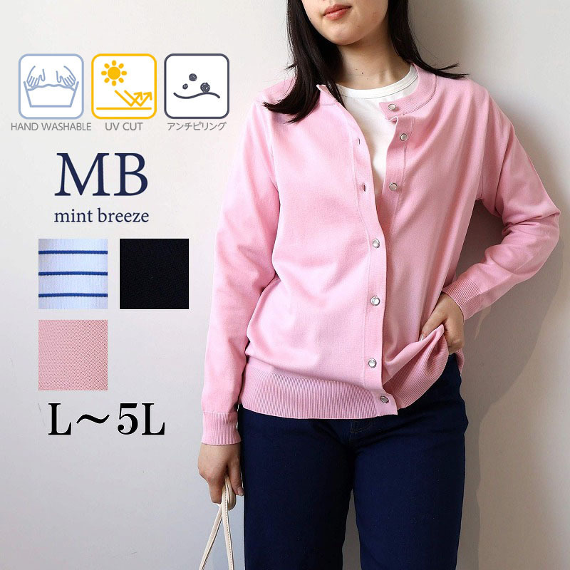 ふわ軽ニットラウンドネックカーディガン LL/3L/4L/5L MB mint breezeミントブリーズ