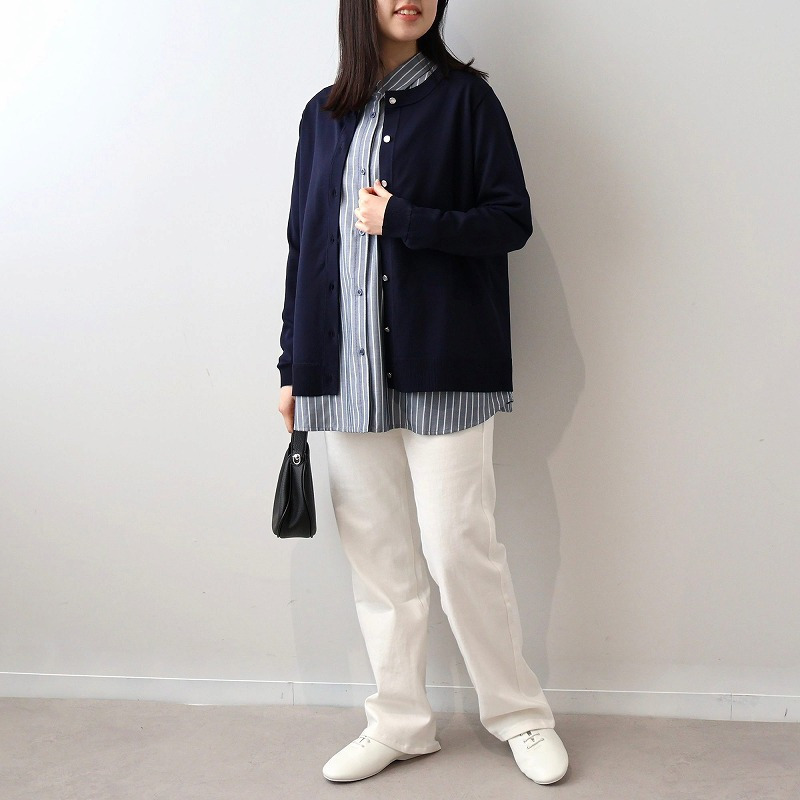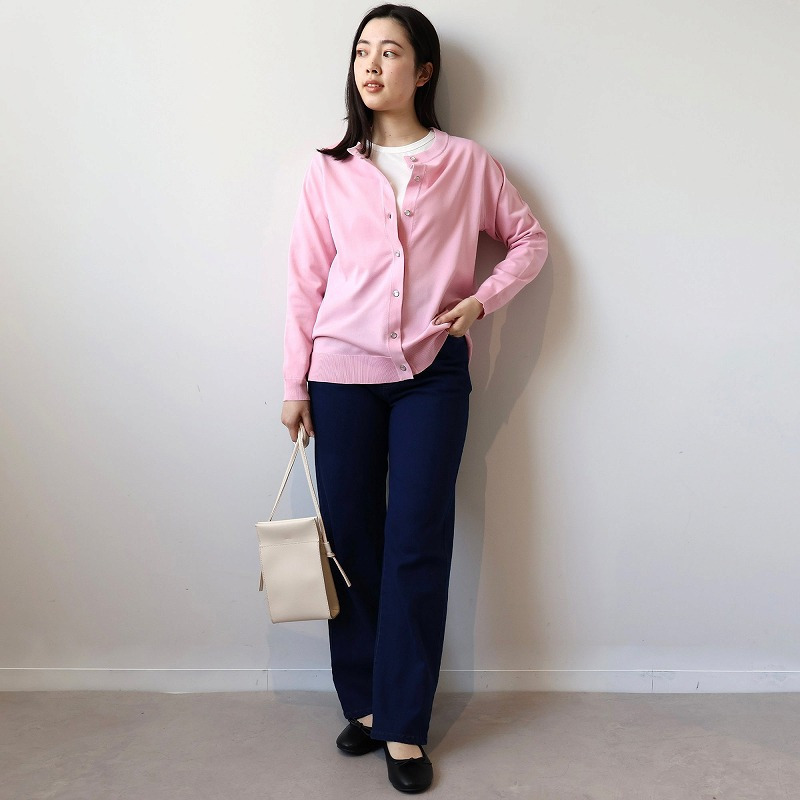 どんなコーディネートにも寄り添う、シンプルなクルーネックカーディガン。