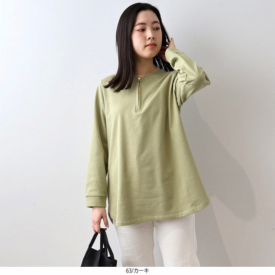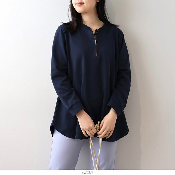 ハーフZIPソフト裏毛チュニック