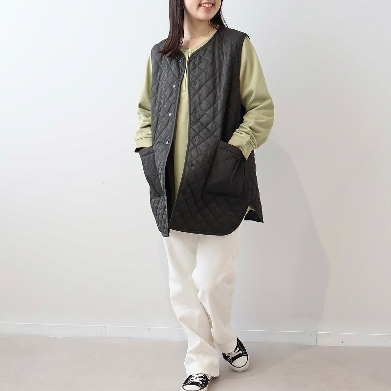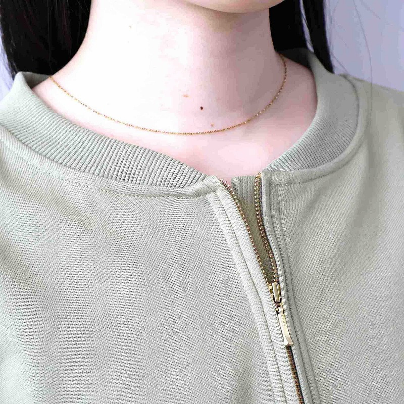 インナーにTシャツやタートルネックを重ねて、ジップを開けて見せるレイヤードスタイルも楽しめます。