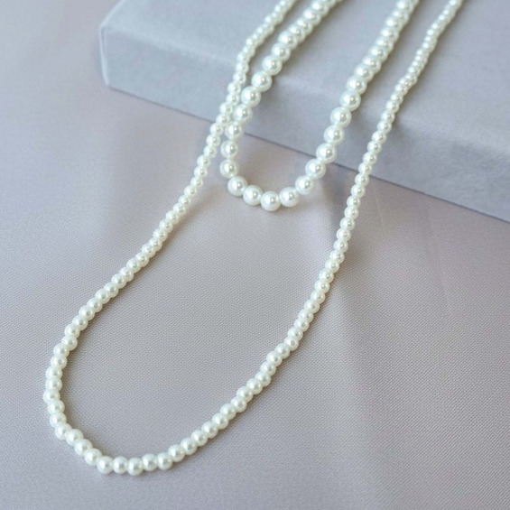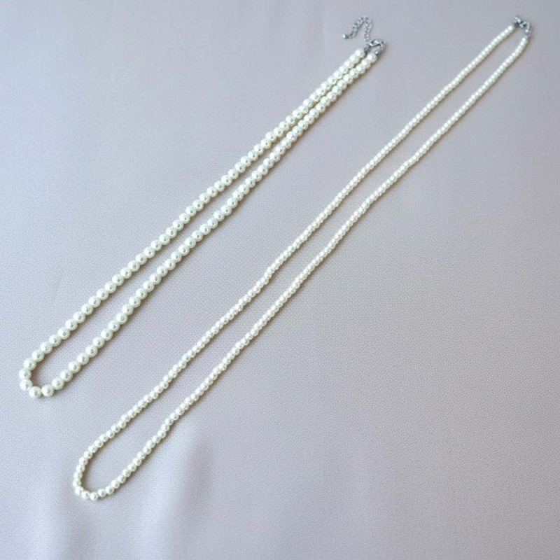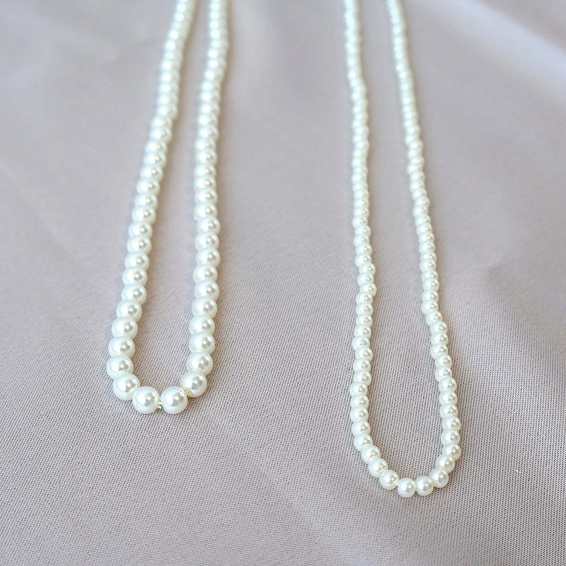 短い方は胸元を上品に飾るマチネ丈、長い方は装いをエレガントに格上げするオペラ丈。