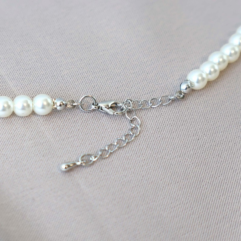 内側のパールは6mm、外側のパールは4mmを使用して表情のある2連が楽しめます。