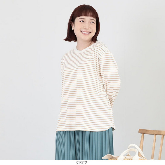 体のラインを拾わないゆったりとしたシルエットと、肩のラインを華奢に見せてくれるドロップショルダーで、リラックスした着心地ながらも着膨れせずに着こなせます。