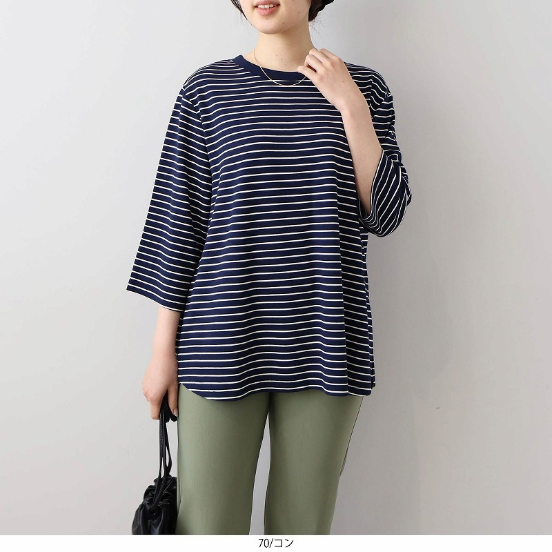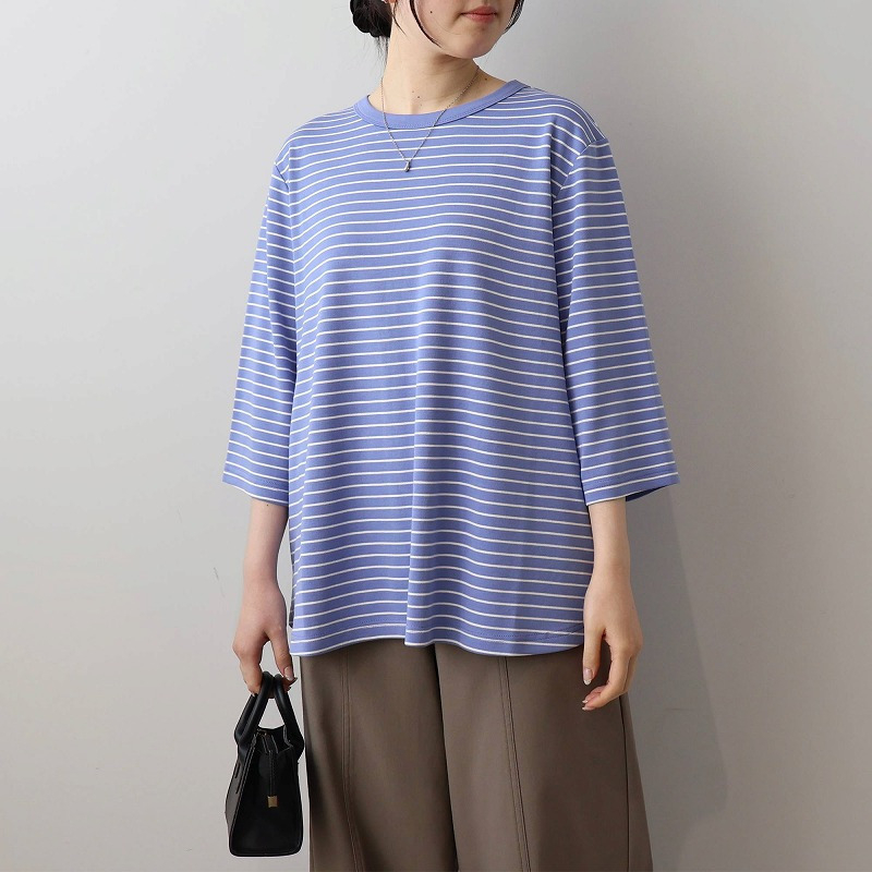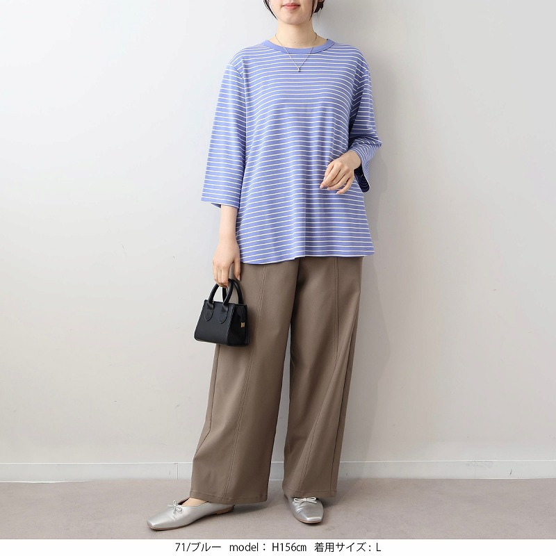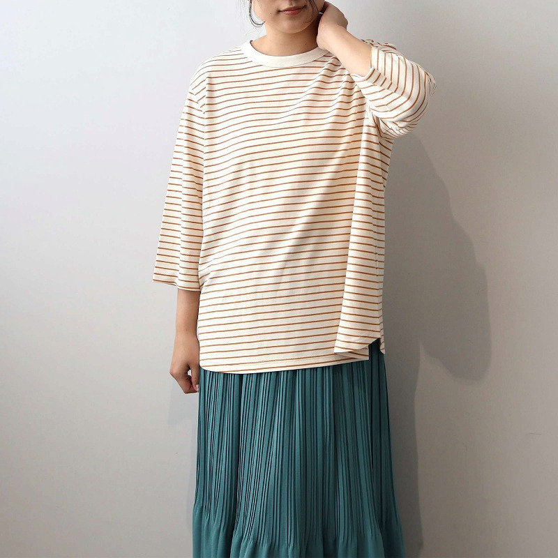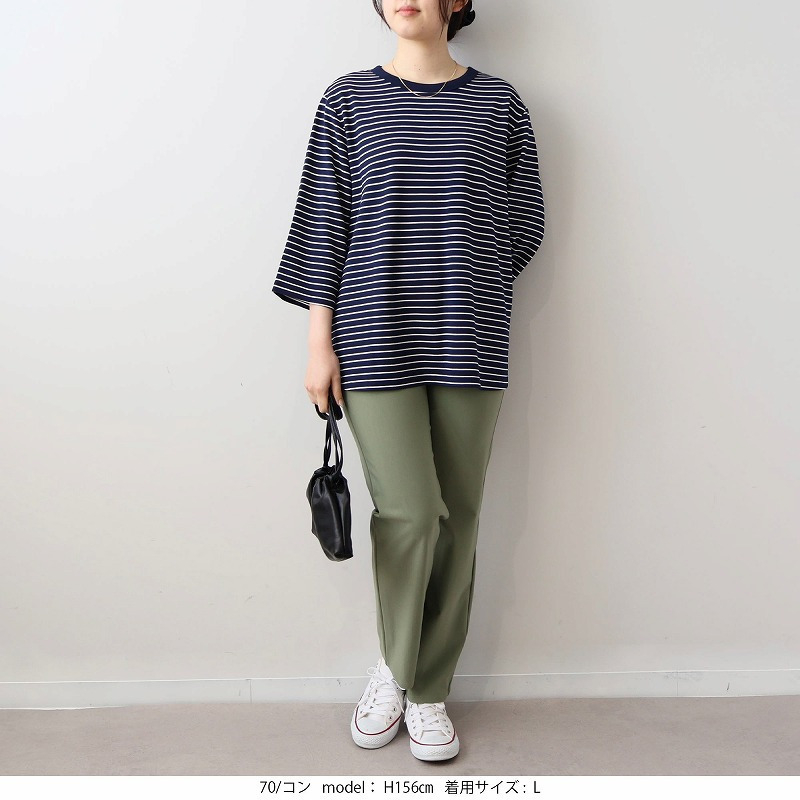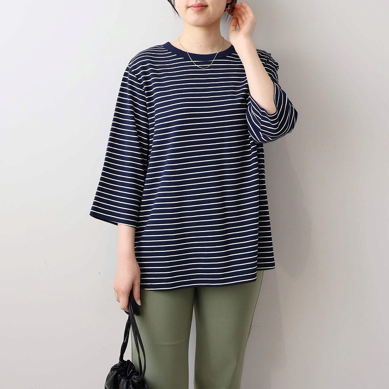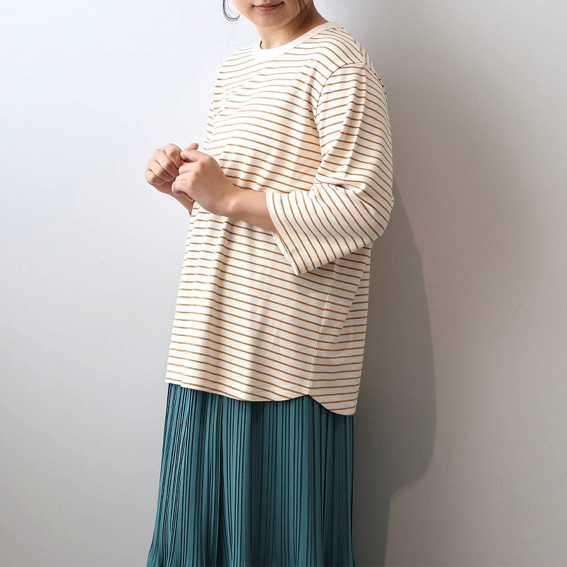 手首が見える7分袖は、コーディネートに抜け感を与え、すっきりとした印象に見せてくれます。