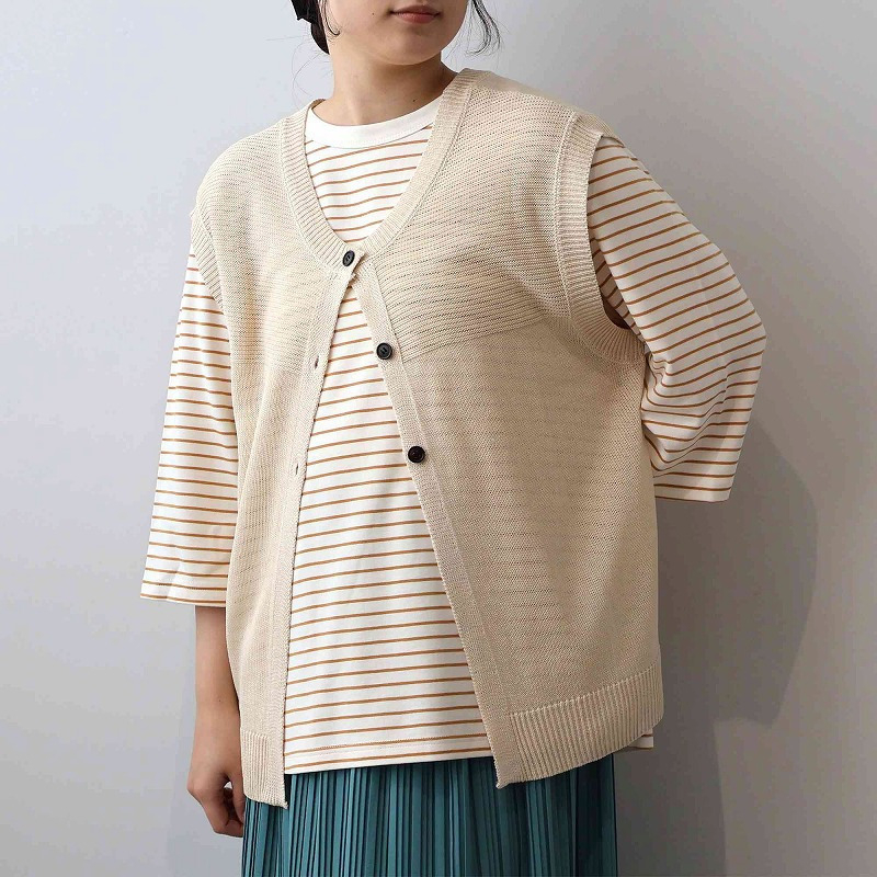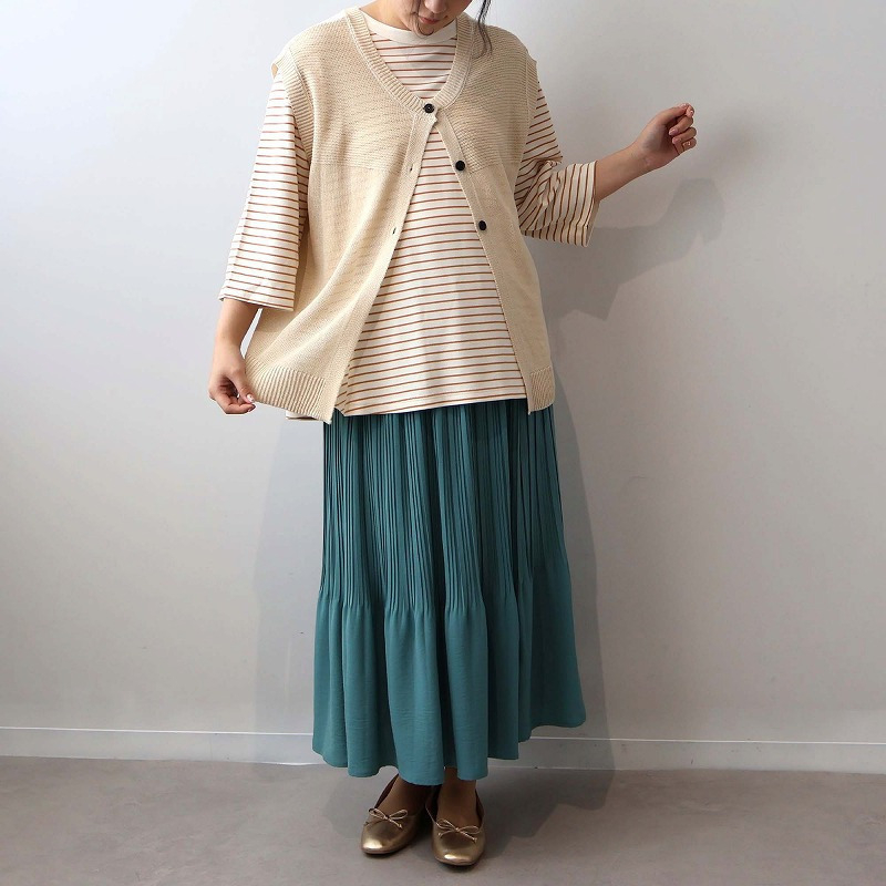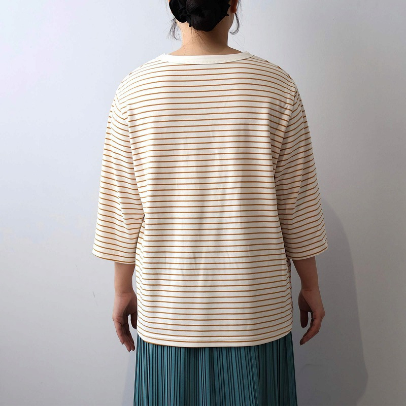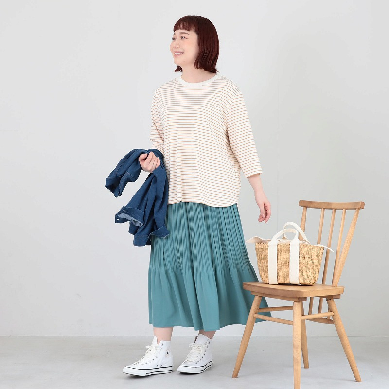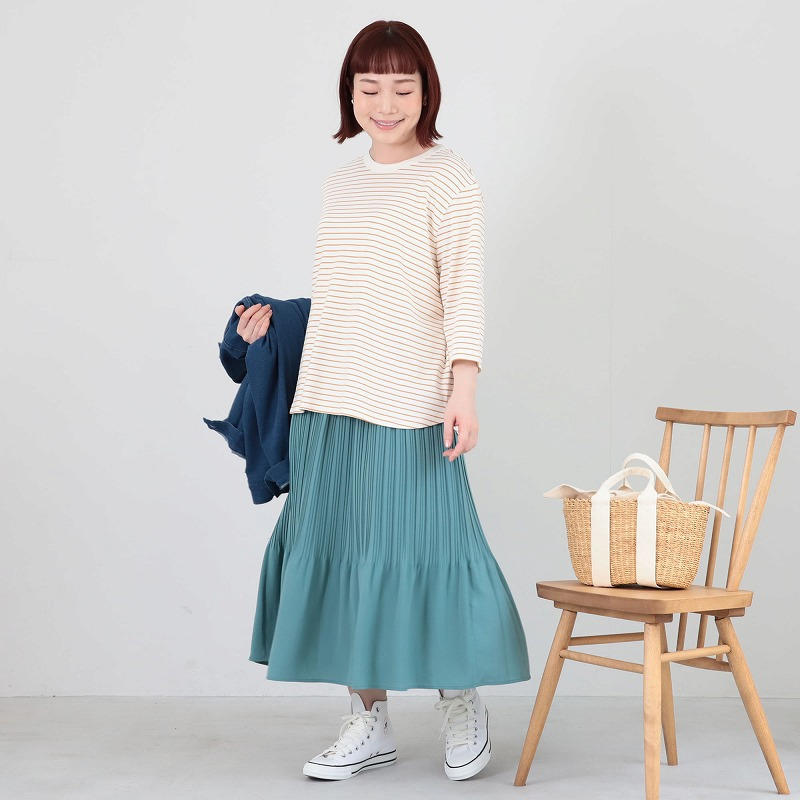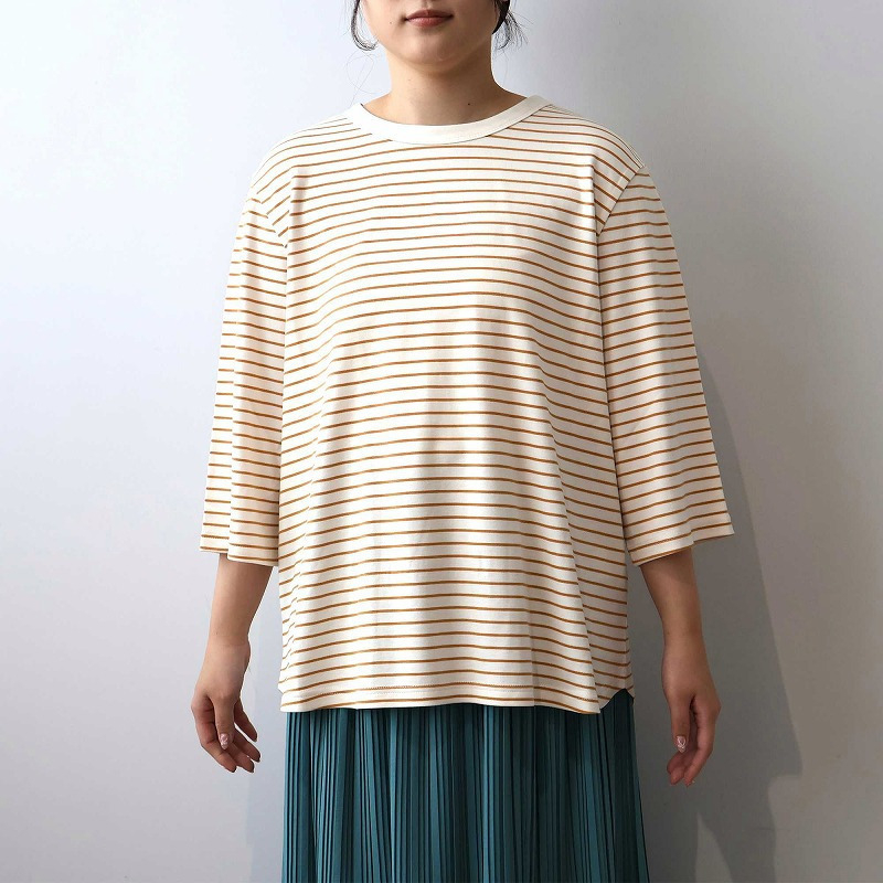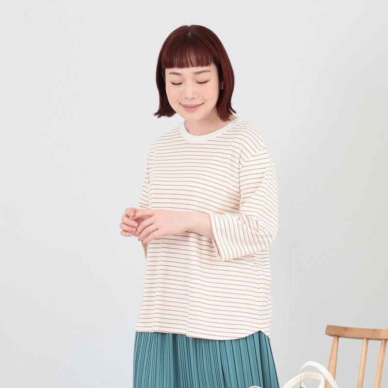 手首が見える7分袖は、コーディネートに抜け感を与え、すっきりとした印象に見せてくれます。