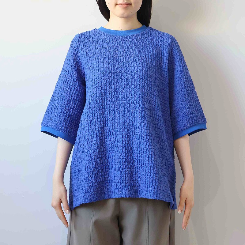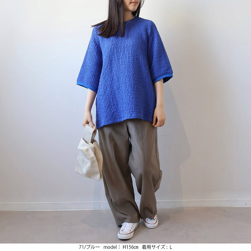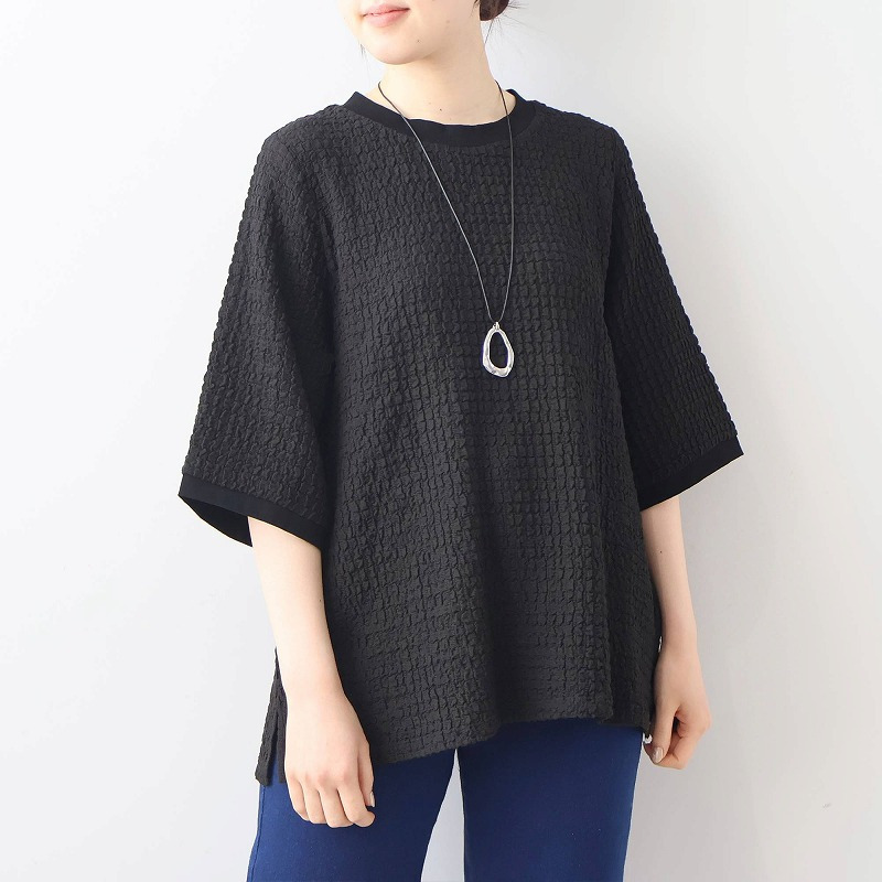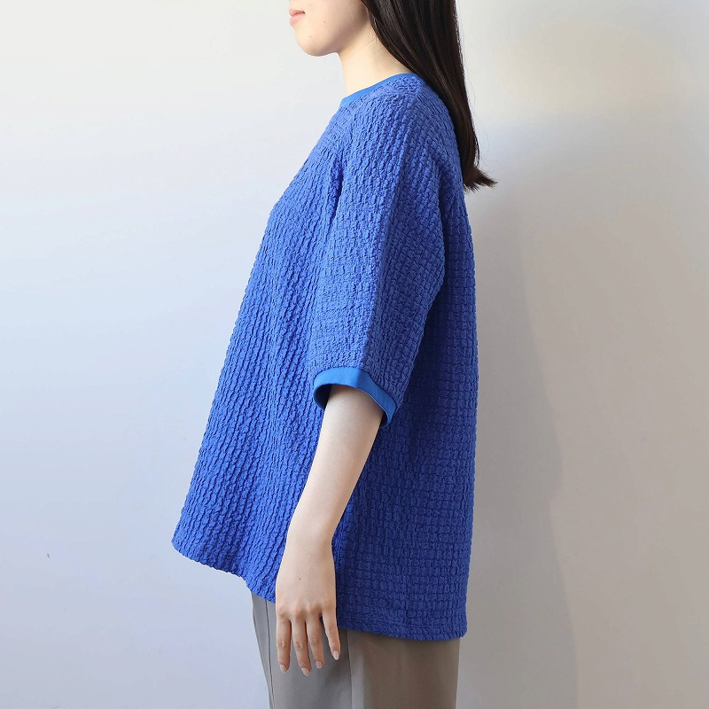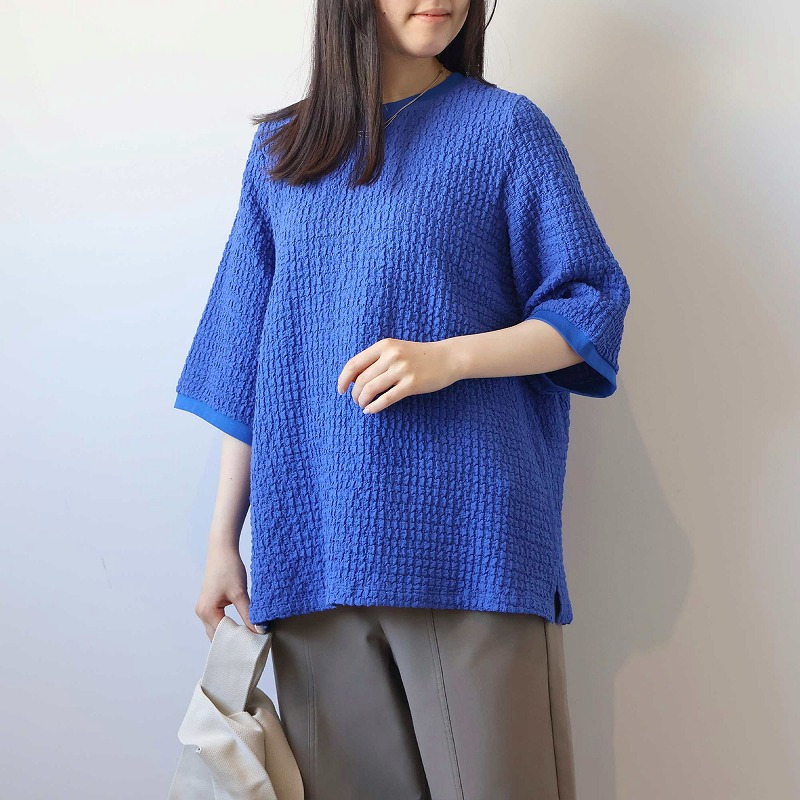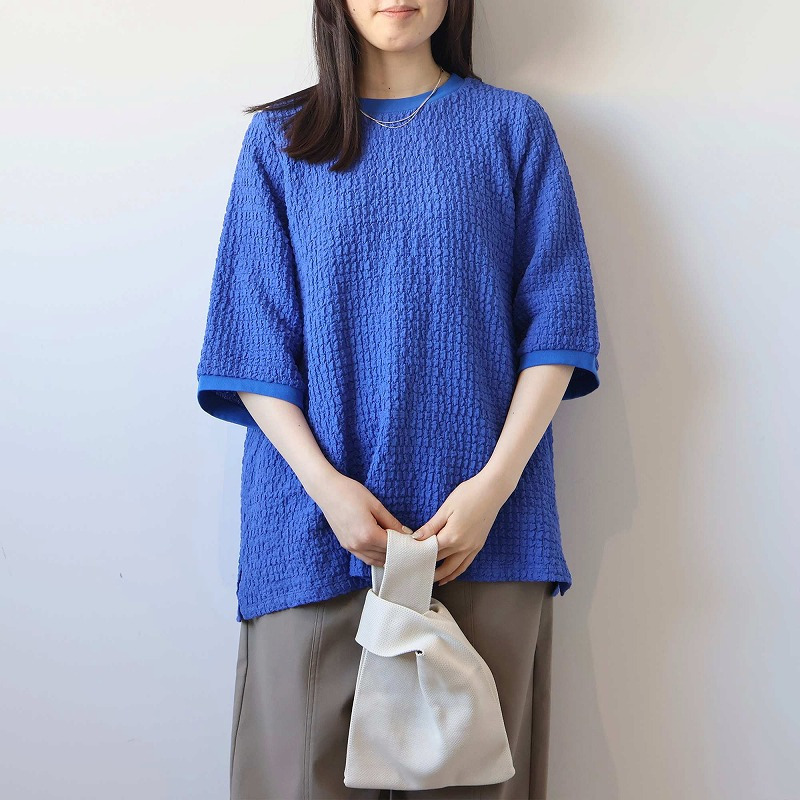ポコポコとした立体的な表面感が魅力の、表情豊かなカットソー素材を使用。