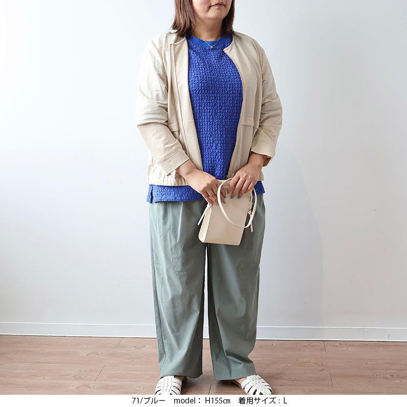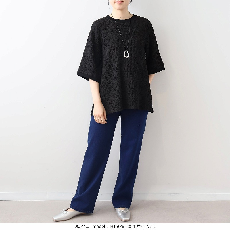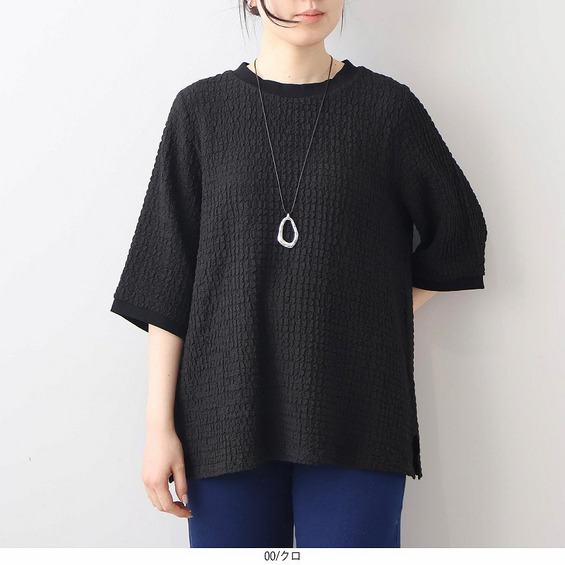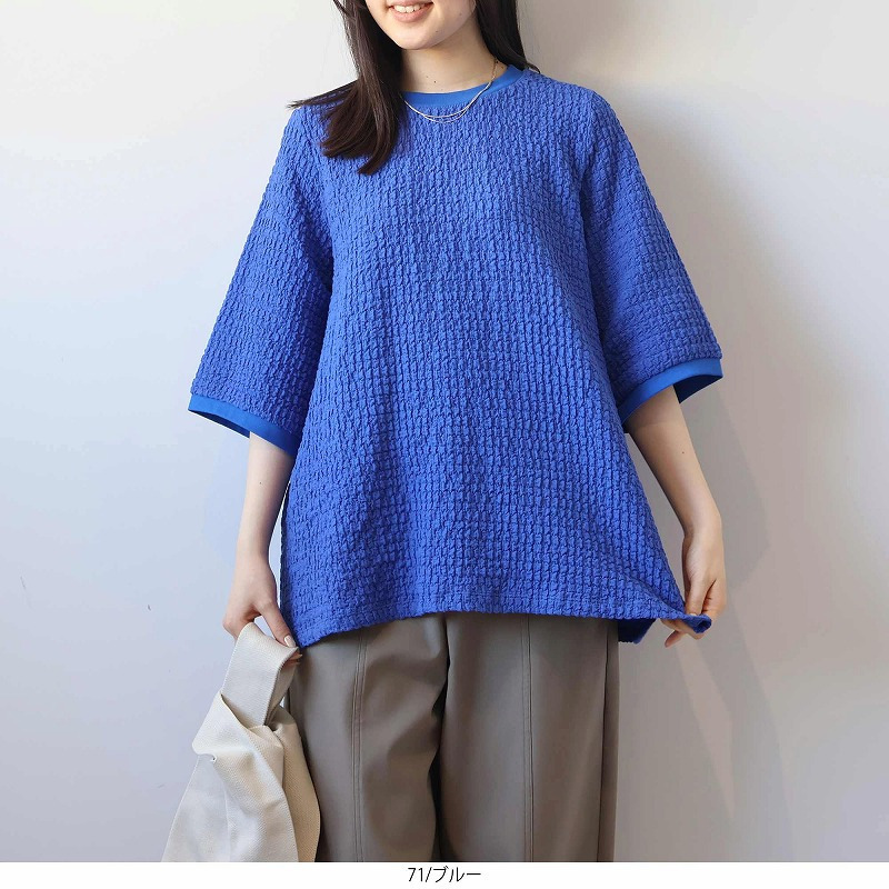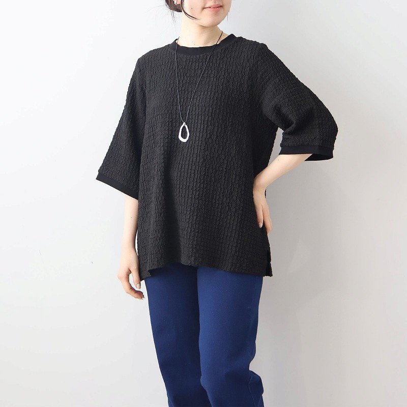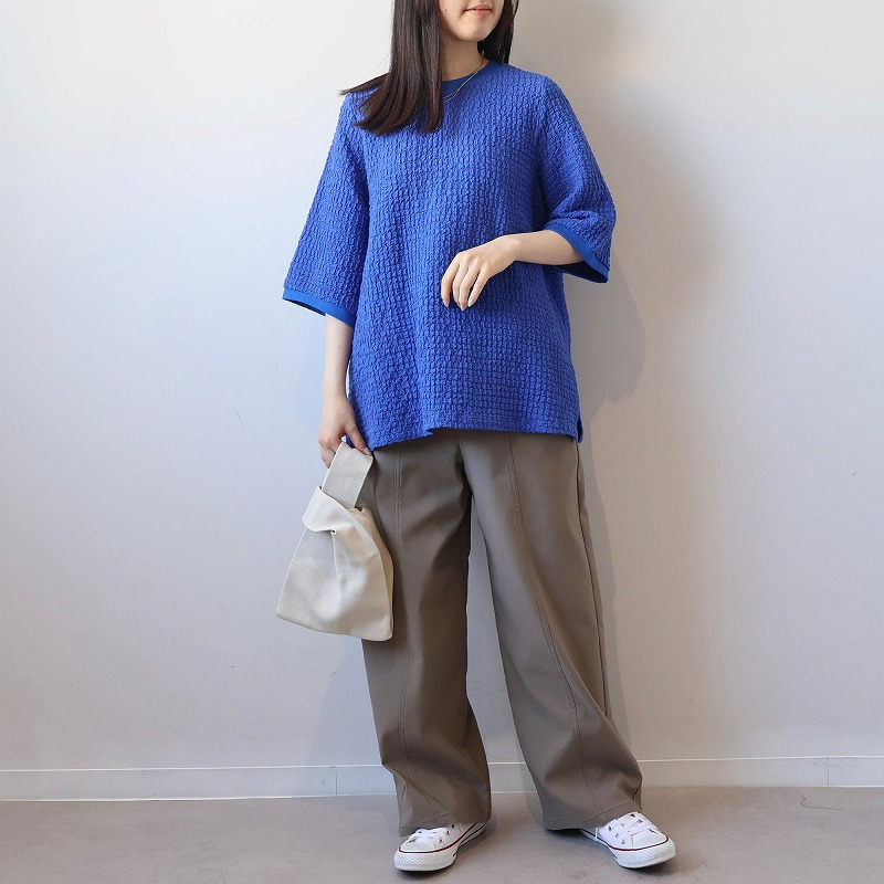 ポコポコとした立体的な表面感が魅力の、表情豊かなカットソー素材を使用。