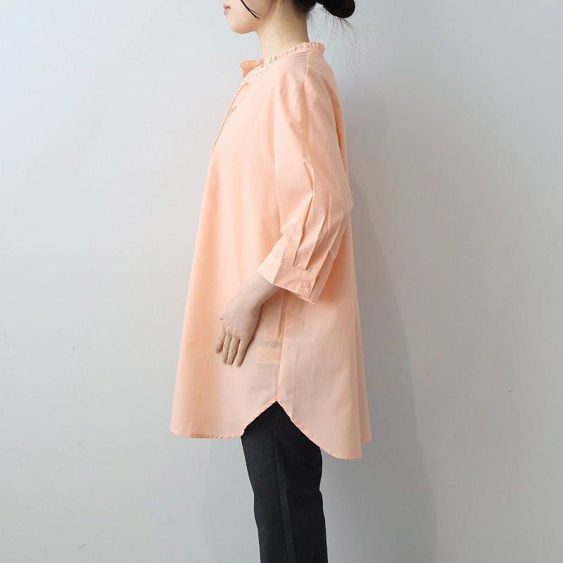 肩の力が抜けたようなドロップショルダーと、手首が見える7分袖が、コーディネートに軽やかな抜け感をプラス。