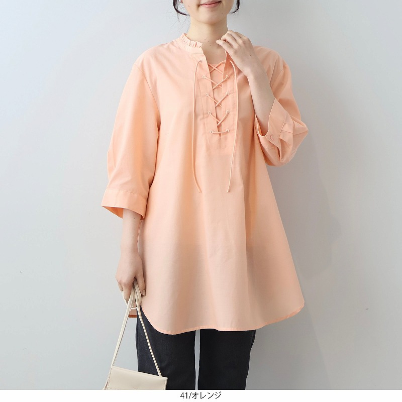 フリル付き レースアップ チュニック ブラウスLL/3L/4L/5L/6L MB mint breezeミントブリーズ