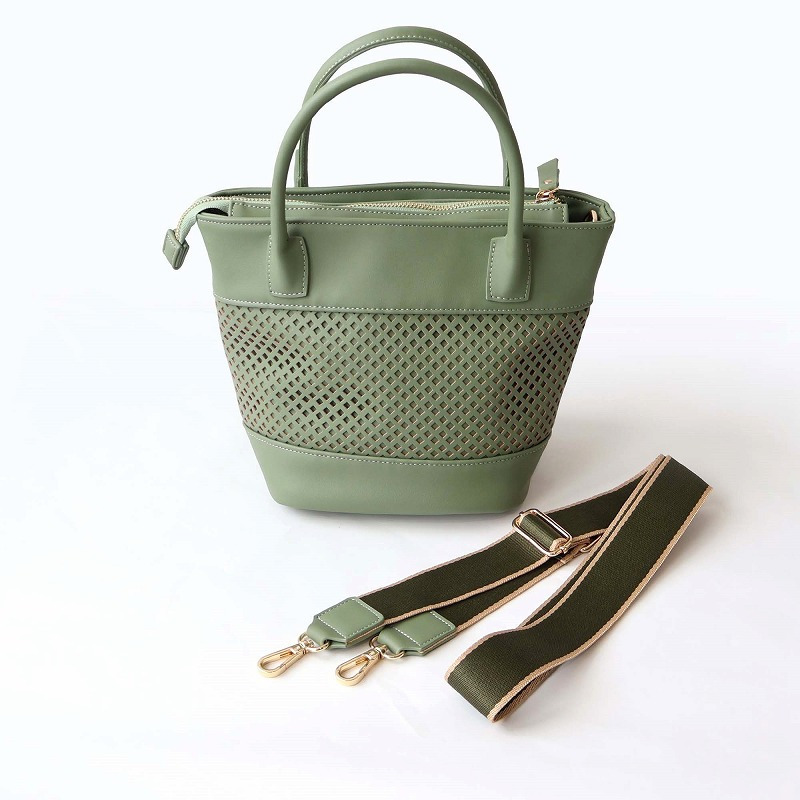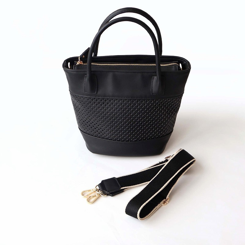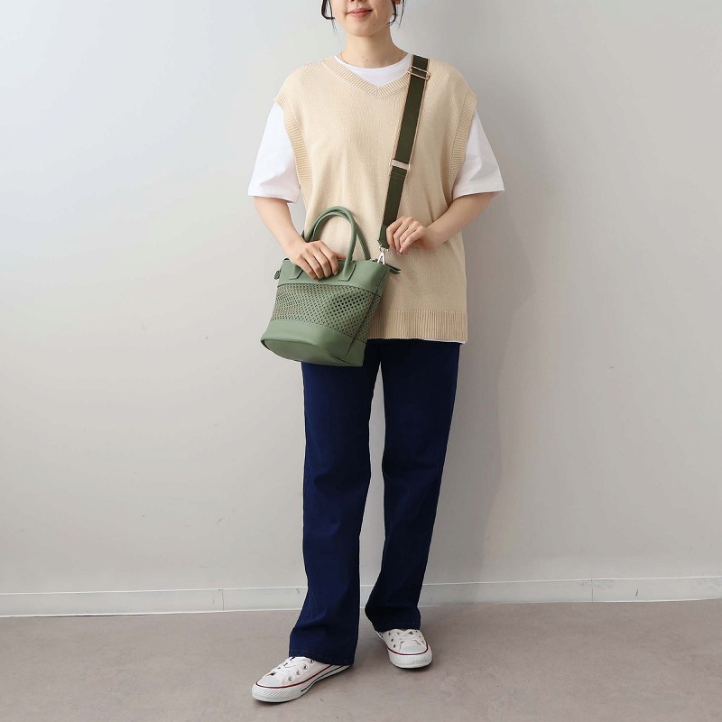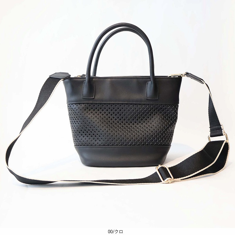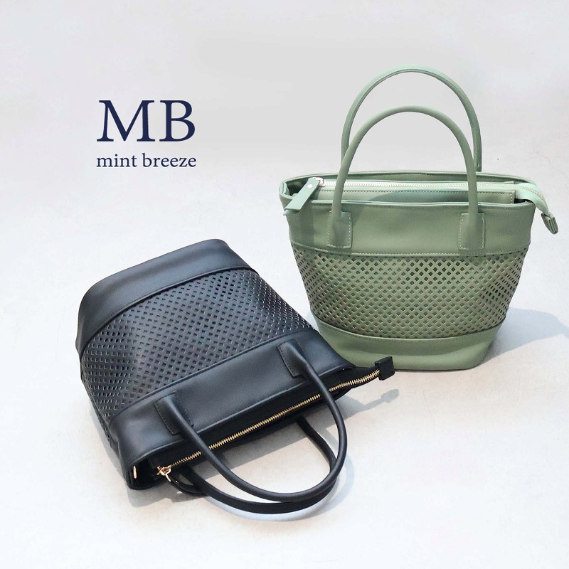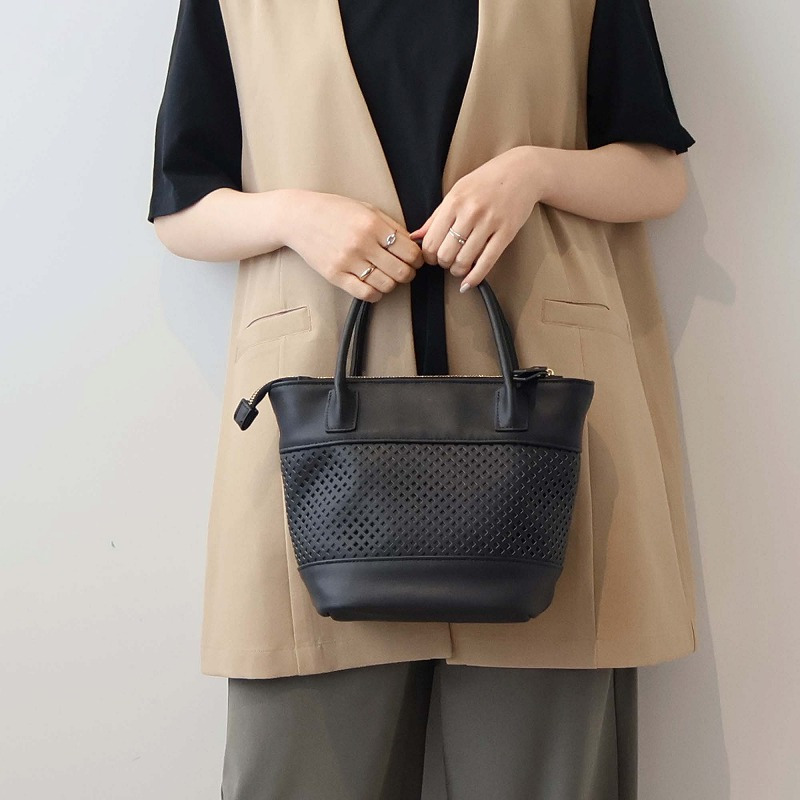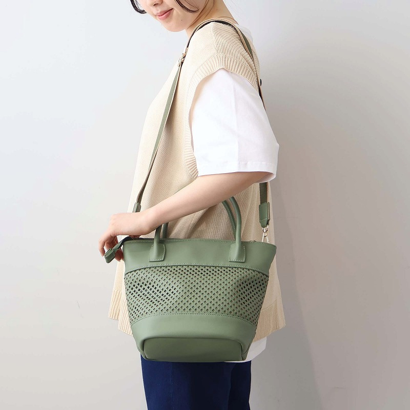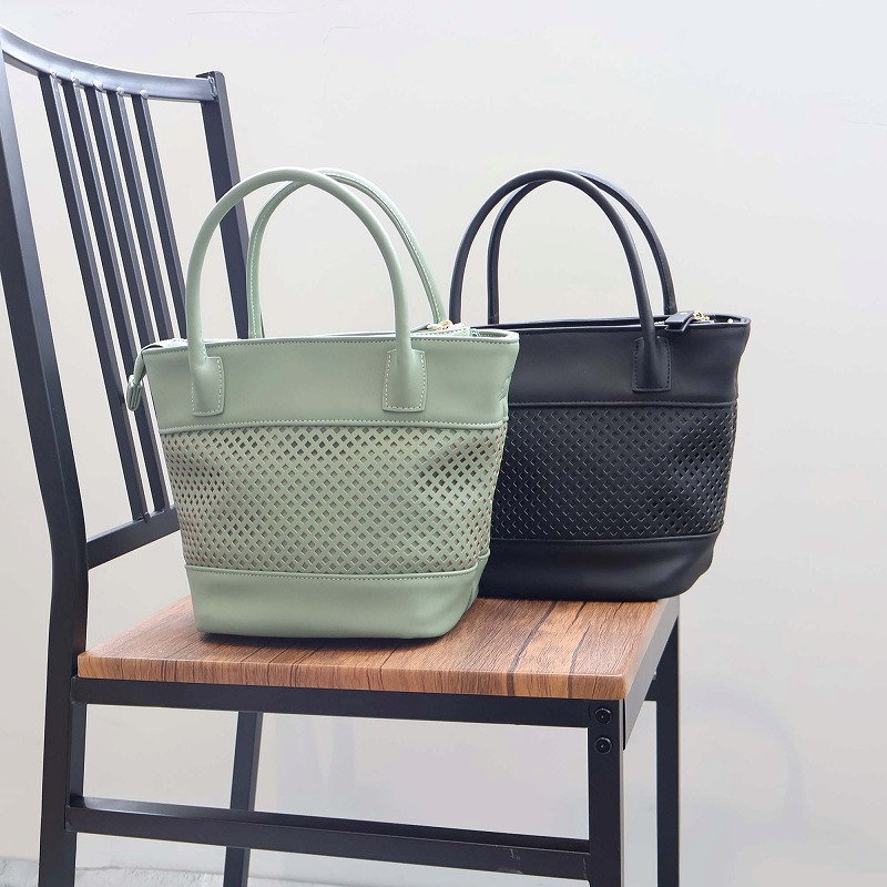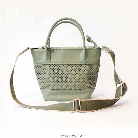 格子状のパンチング加工を施し、春夏シーズンらしい軽やかさを表現した2WAYミニトートバッグ。