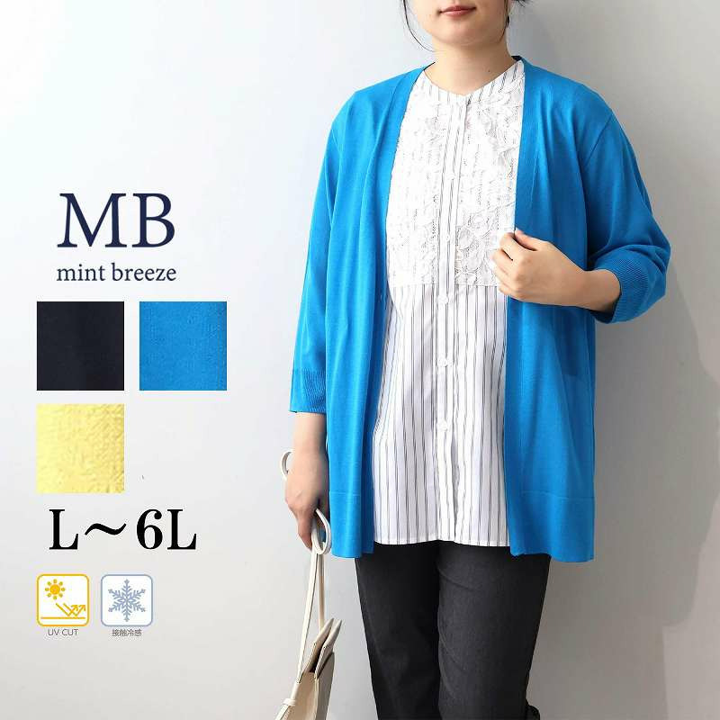 【UVカット/接触冷感】VネックニットカーディガンLL/3L/4L/5L MB mint breezeミントブリーズ