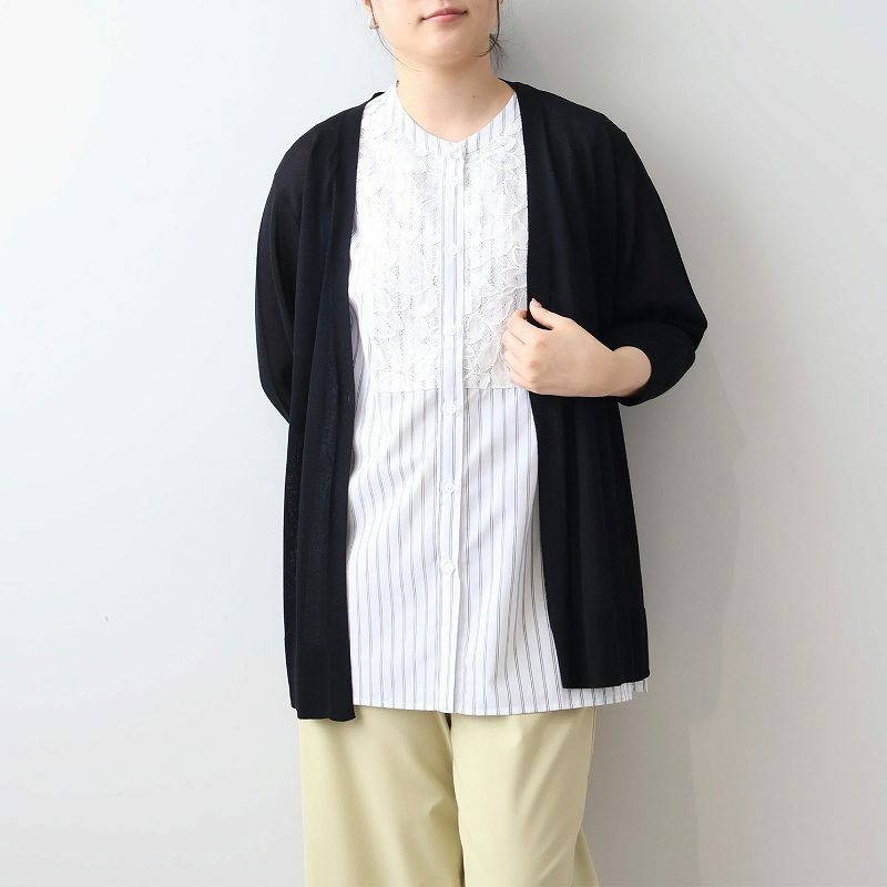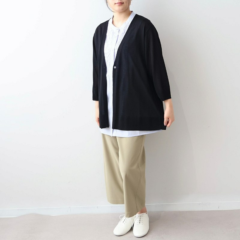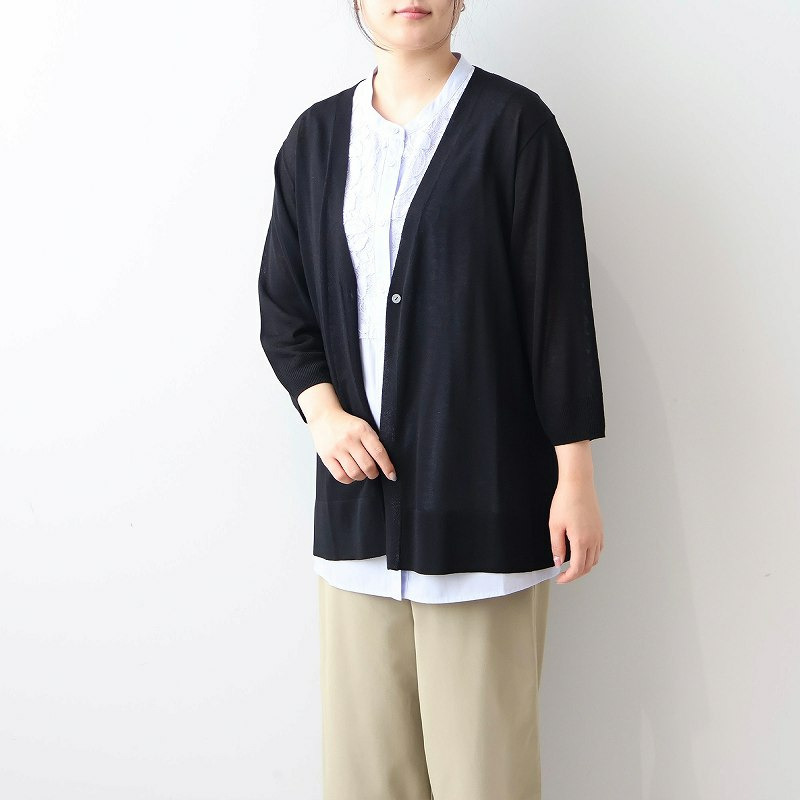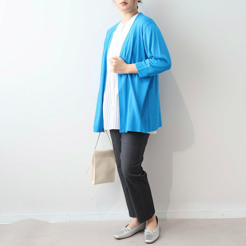 ワンピースに重ねたり、お仕事の日のきれいめスタイルにもぴったり。夏の強い日差し対策や、室内の冷房対策として、バッグに一枚入れておくと間違いなく重宝する、この夏手放せないアイテムです。