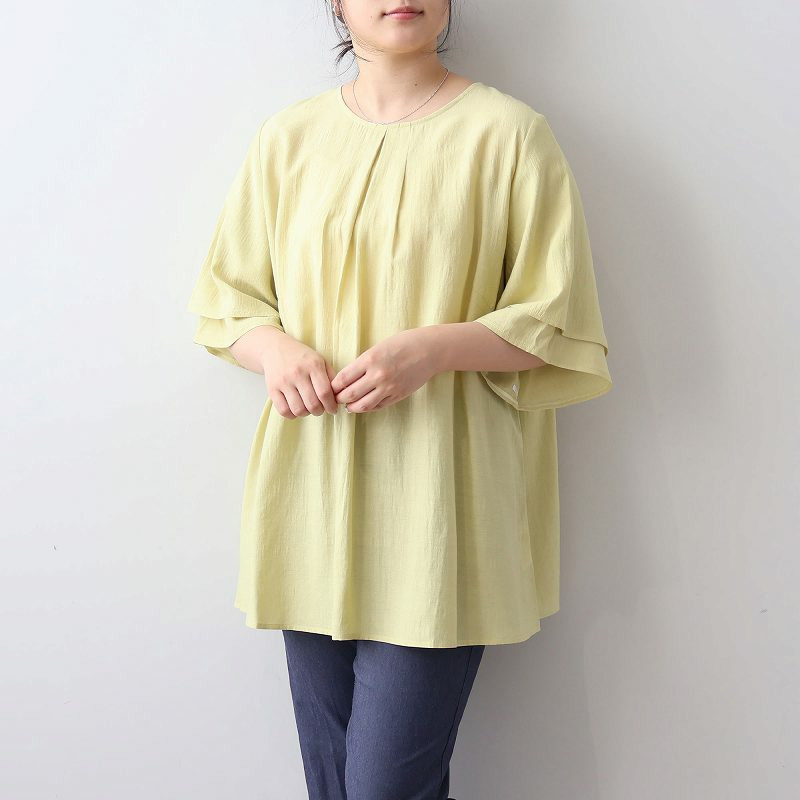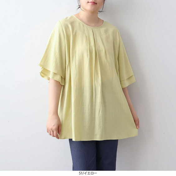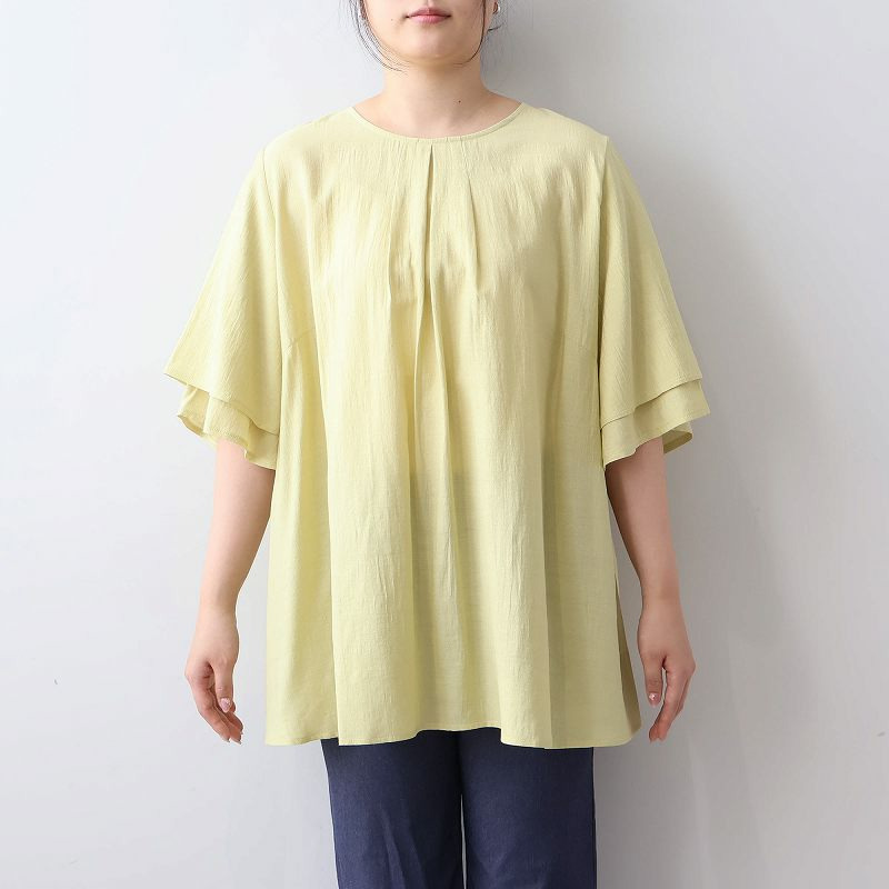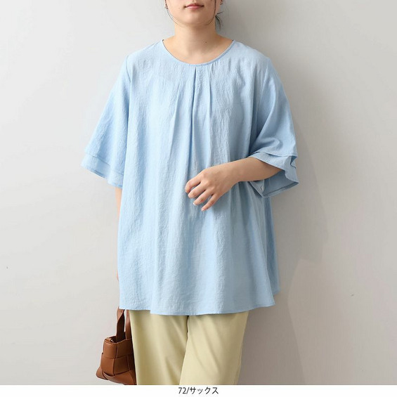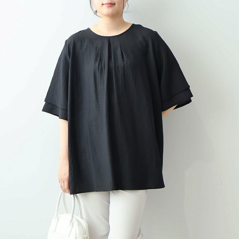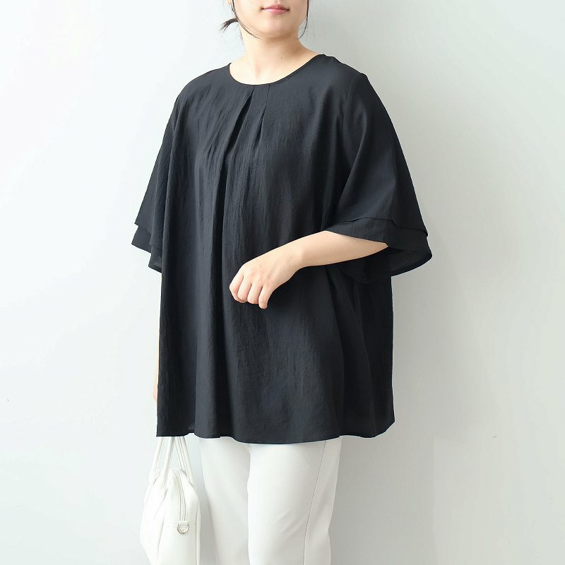Tシャツ感覚で楽に着られるのに、ブラウスのように華やかなので、普段使いからちょっとしたお出かけまで幅広く活躍します。