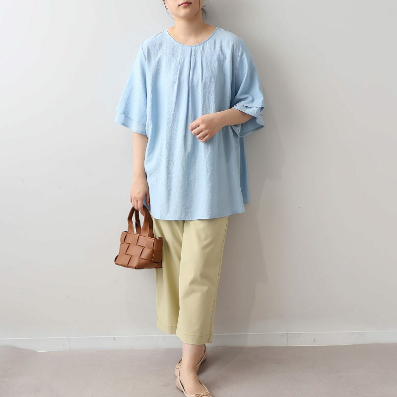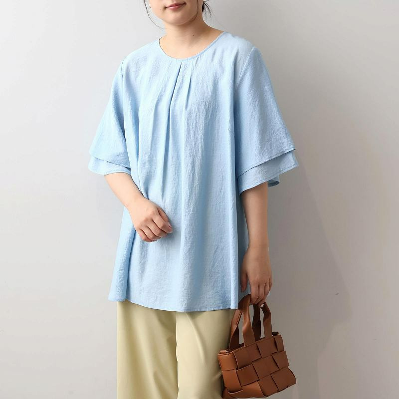 揺れる袖で、二の腕華奢見え 夏の涼やかブラウス