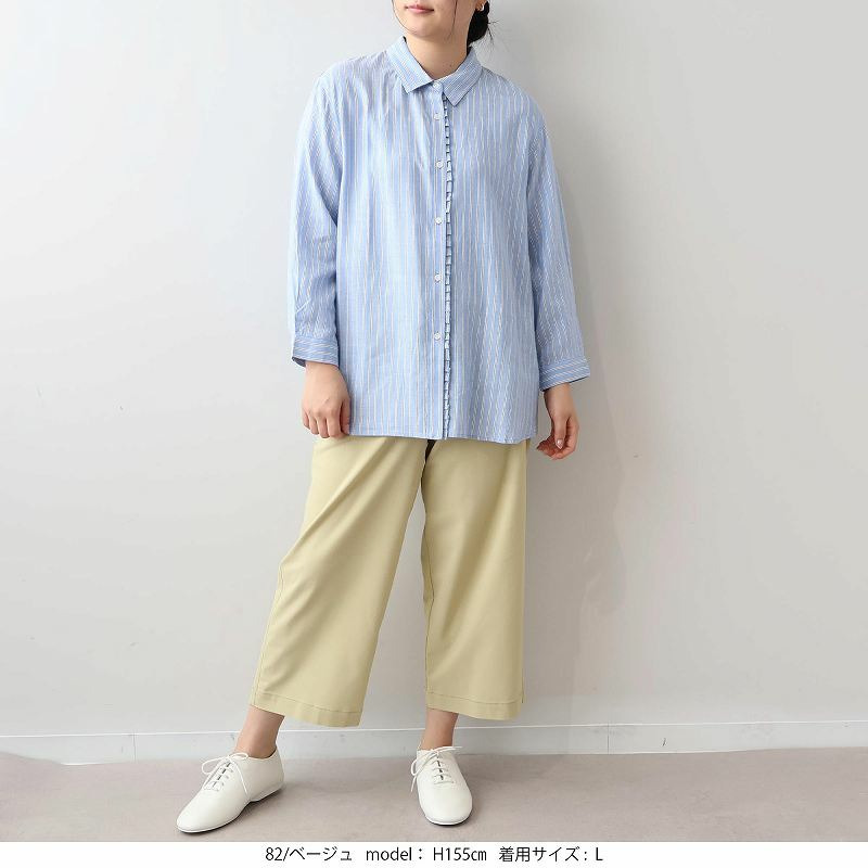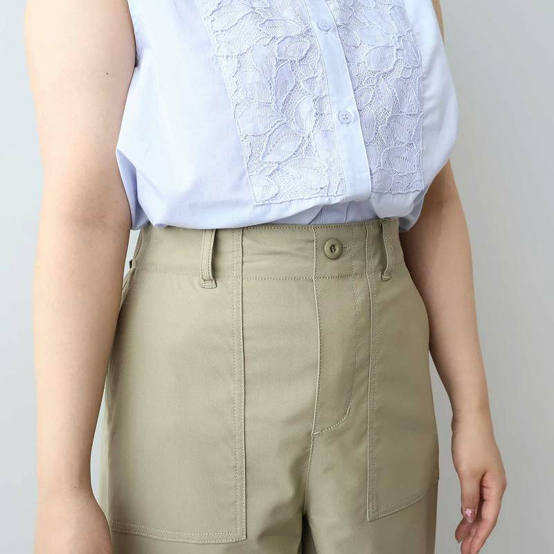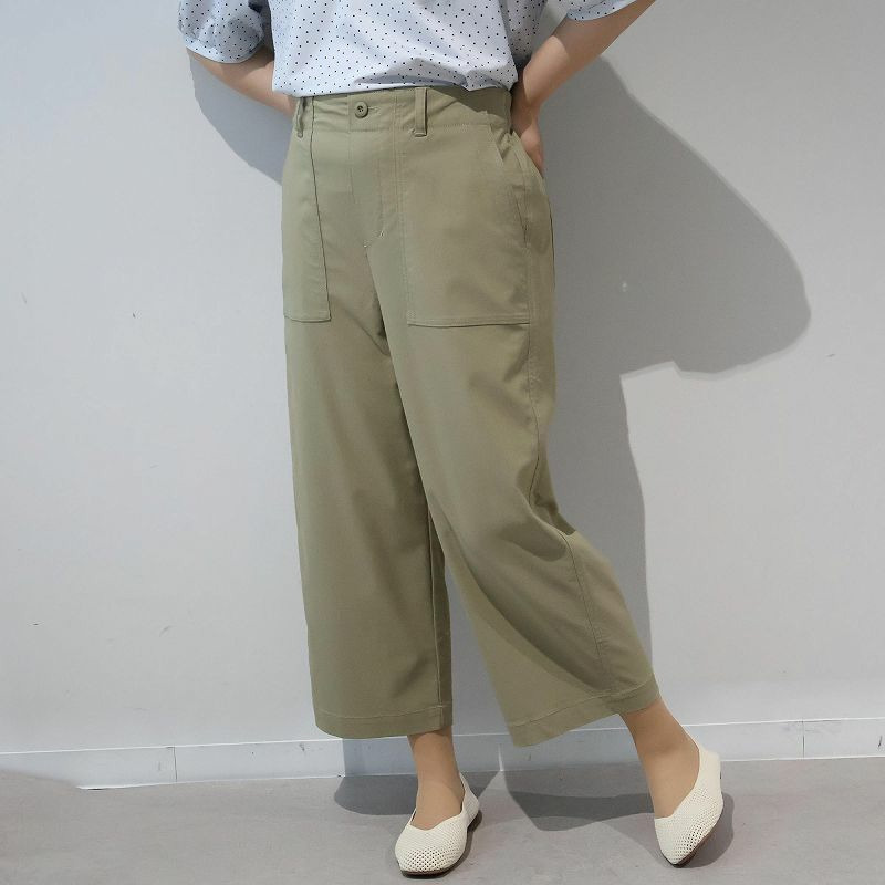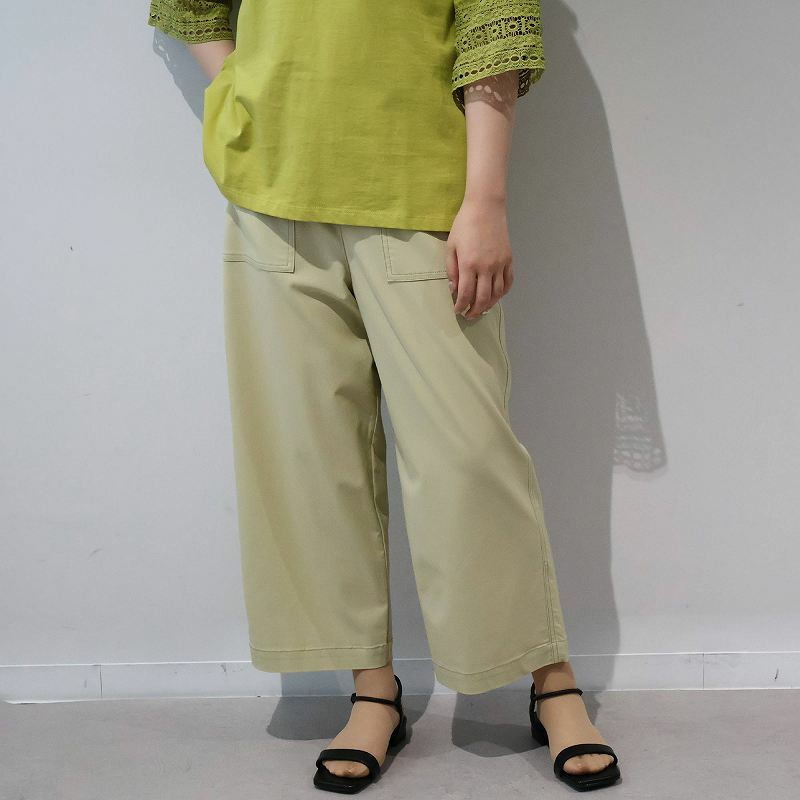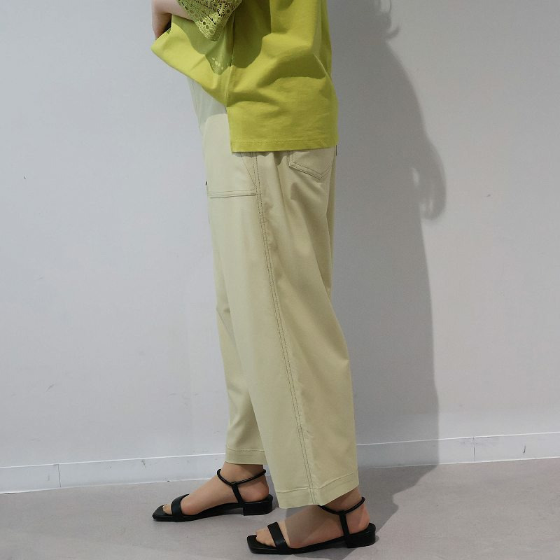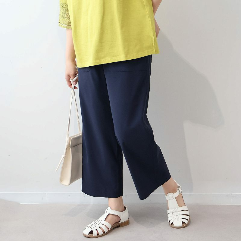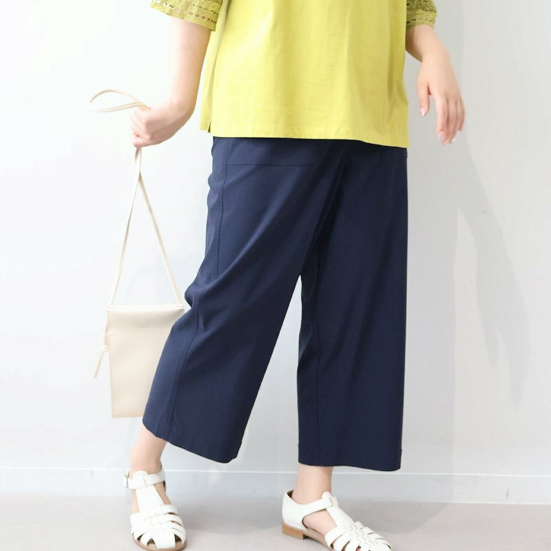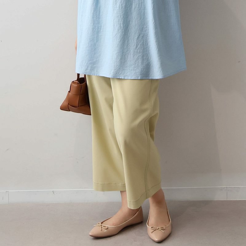 腰回りはもたつかず、太ももから下はラインを拾わずにストンと落ちるセミワイドストレートシルエットが、まっすぐで綺麗なレッグラインを演出。足首がのぞくカットレングス丈が、コーディネートに軽やかな抜け感をプラスします。