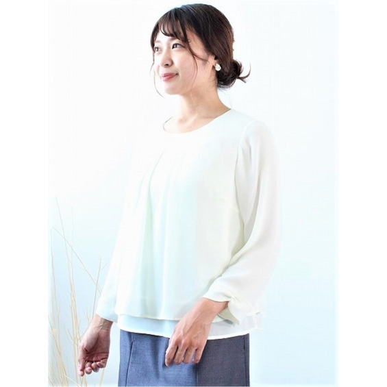 レイヤード風 ジョーゼット ブラウス/ 大きいサイズ レディス ミントブリーズ