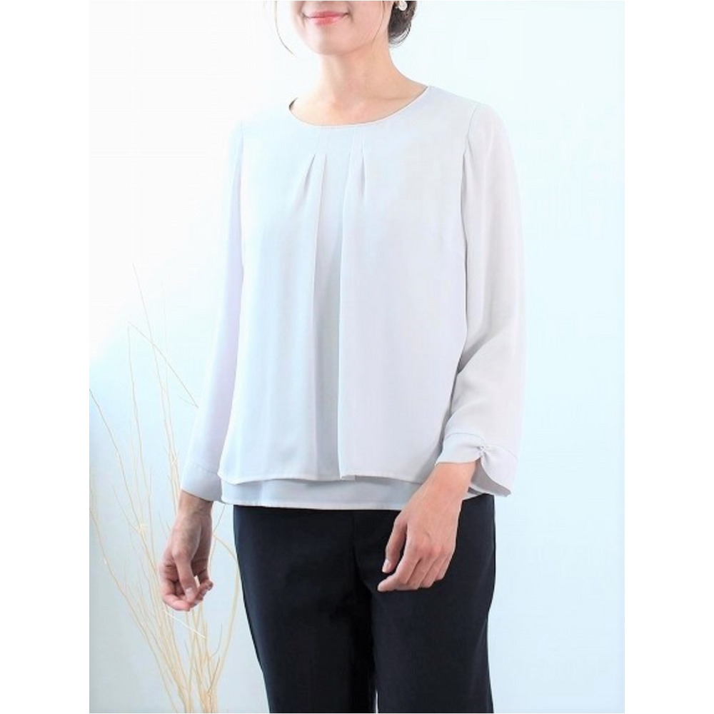 人気のあるタックデザインのブラウスをジョーゼット生地でお作りしました。