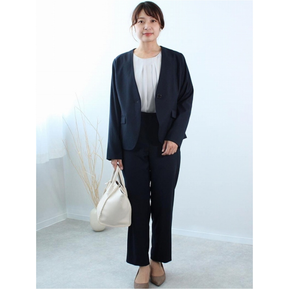 ジャケットの中に着用いただいた時に前のタックがきれいに見えるデザインになっています。