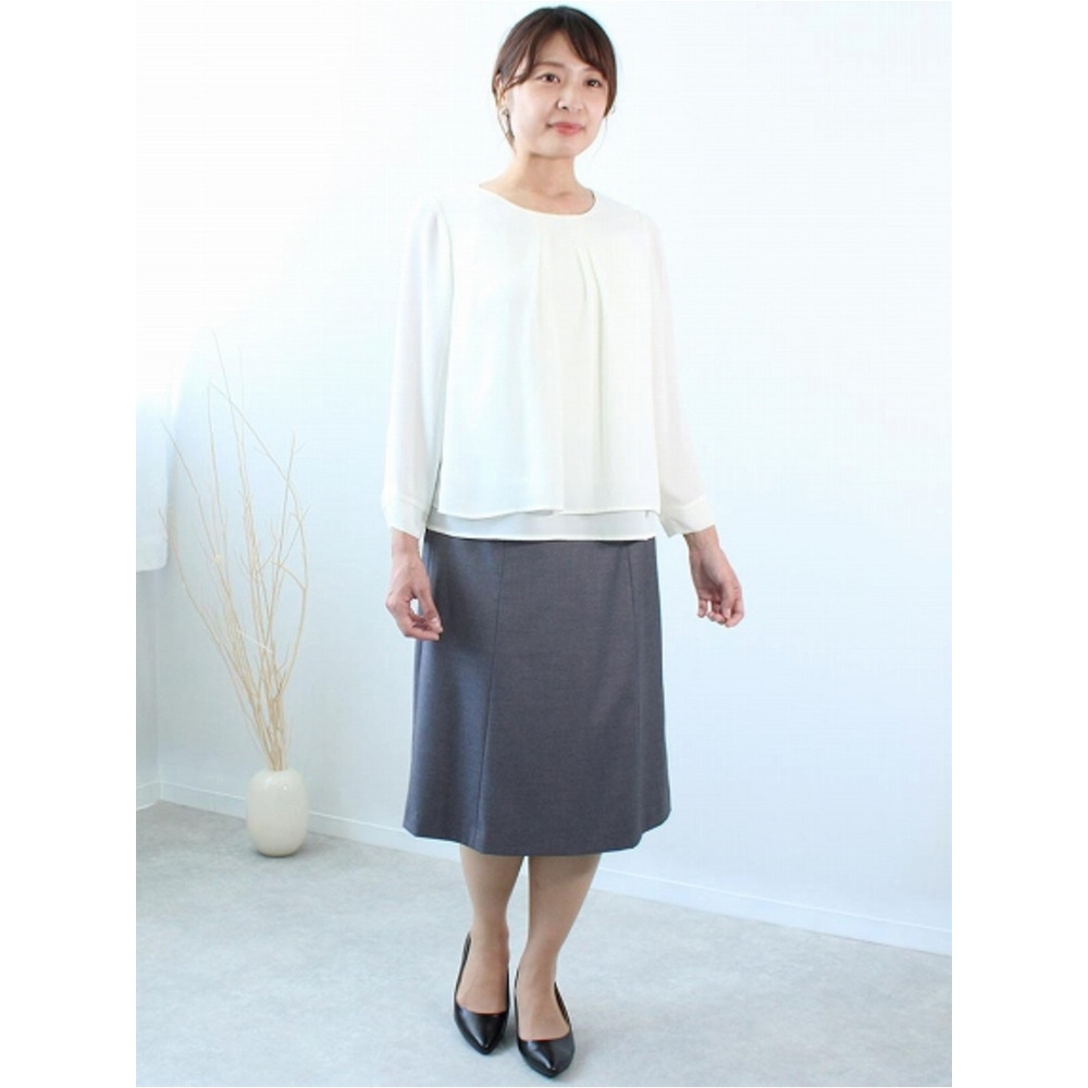 前面のタックには立体感をつけ、裾はレイヤードデザインになっています。