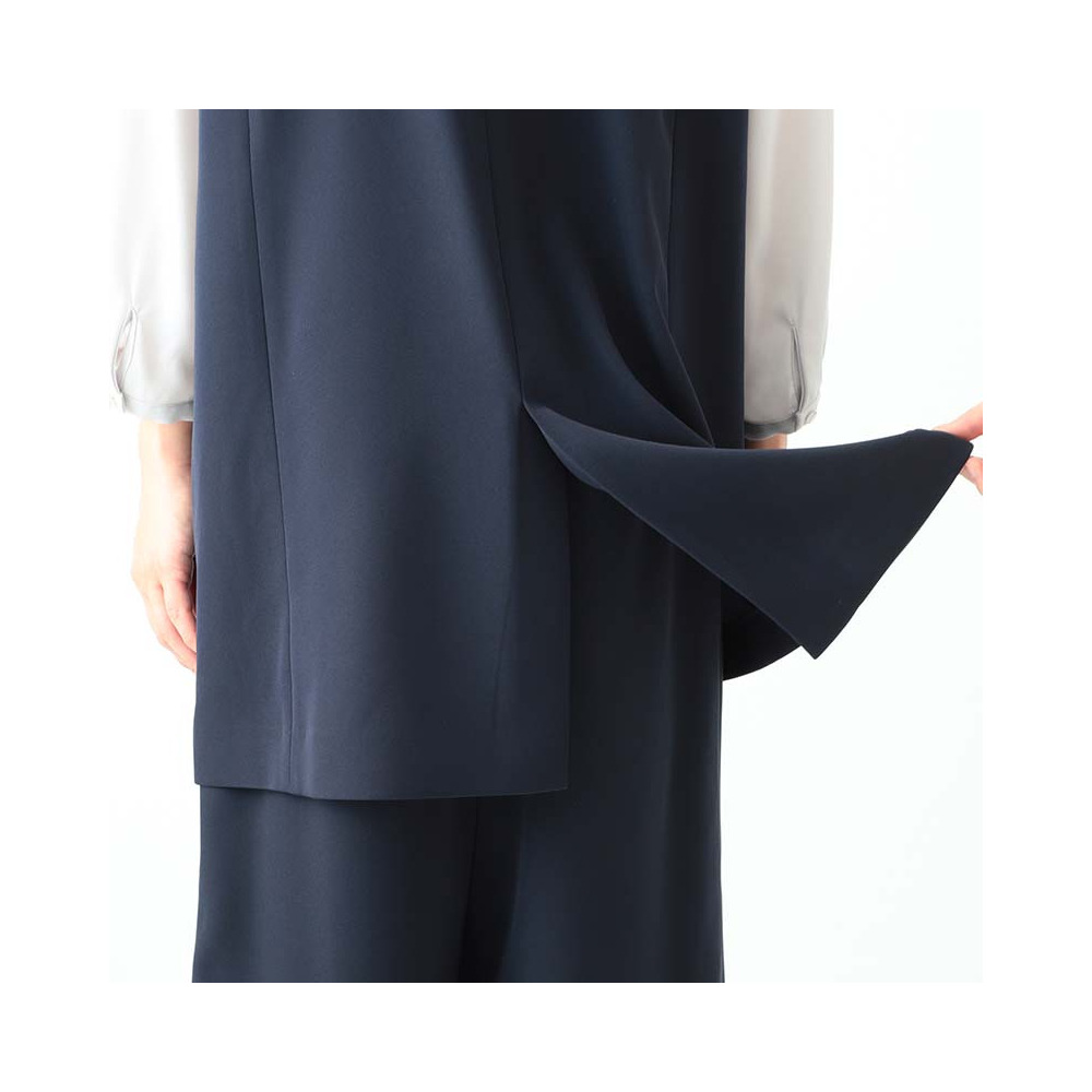【タイムセール】ふわもちサテン ノーカラー ロング ジレベスト