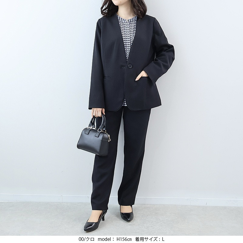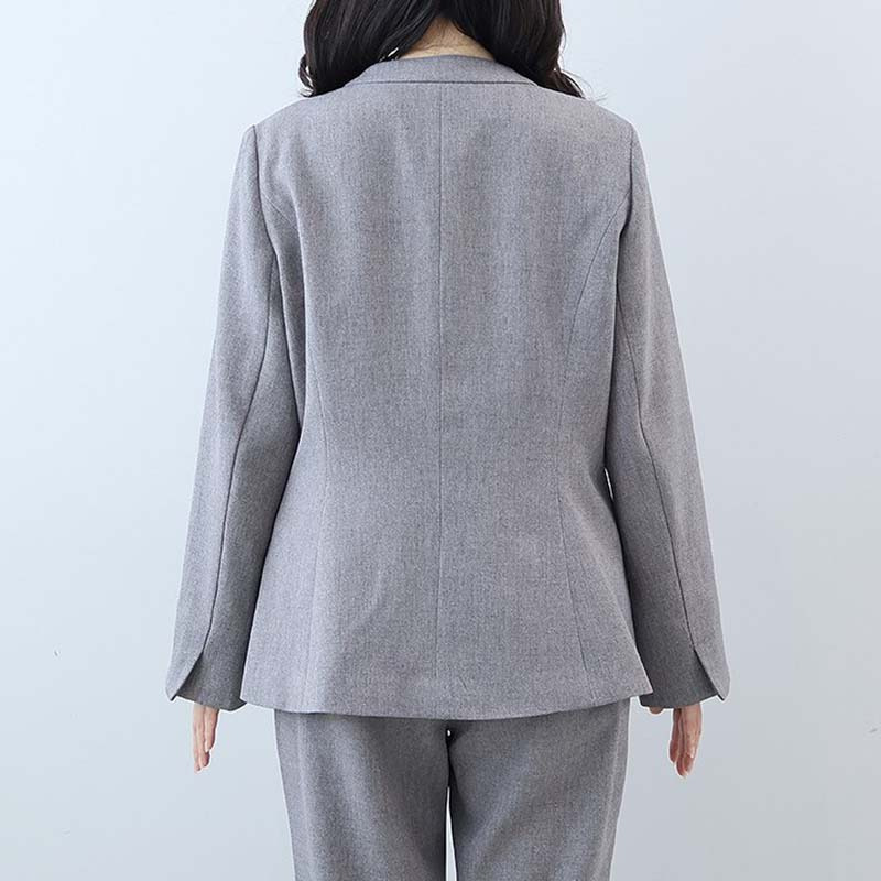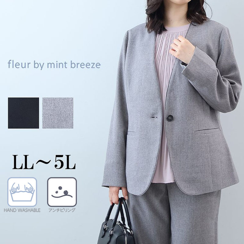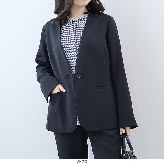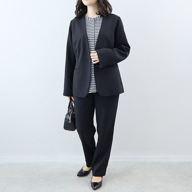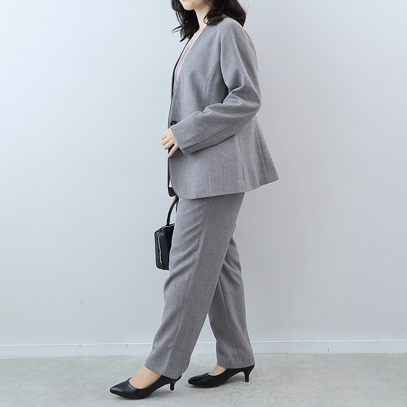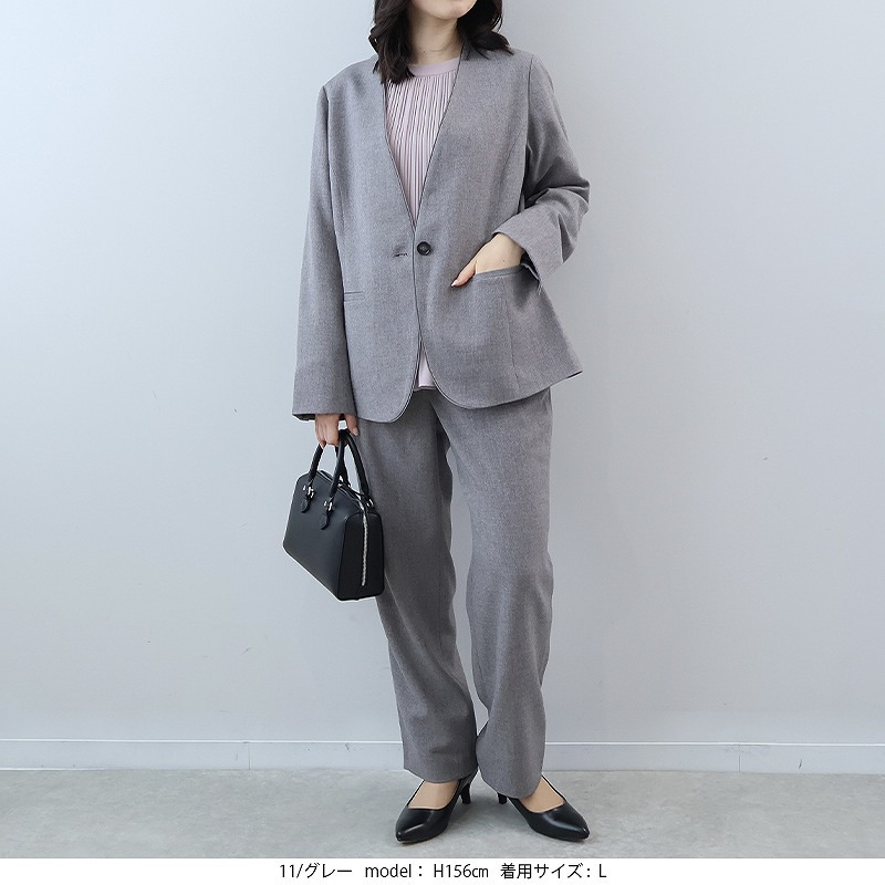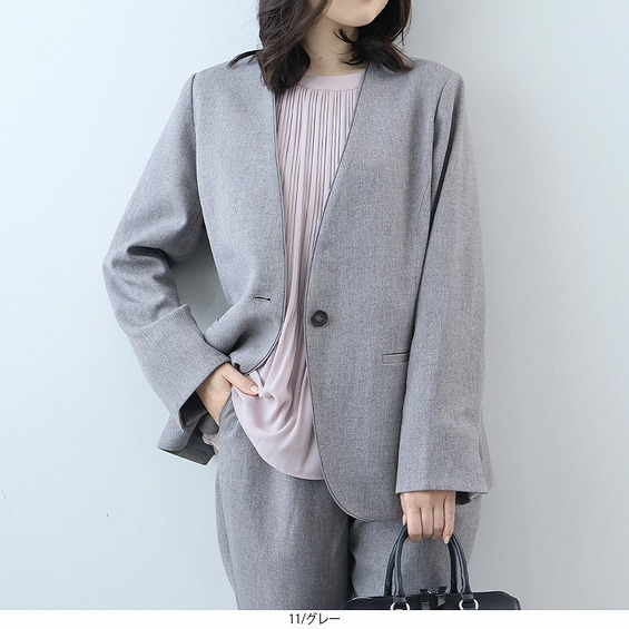 【ウォッシャブル・アンチピリング】ウール調シャークパイピングノーカラージャケット セットアップ可能