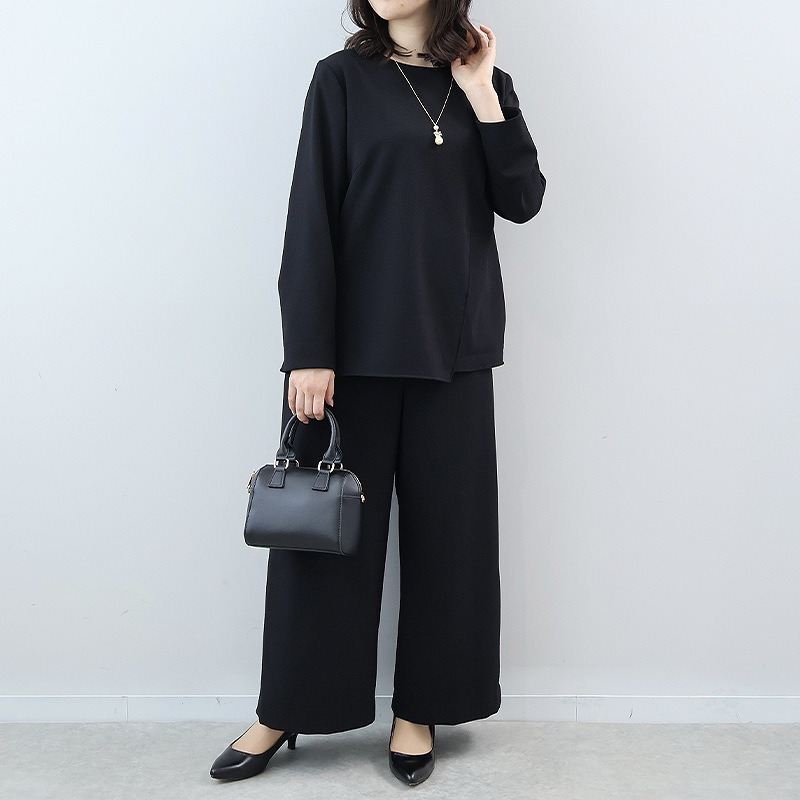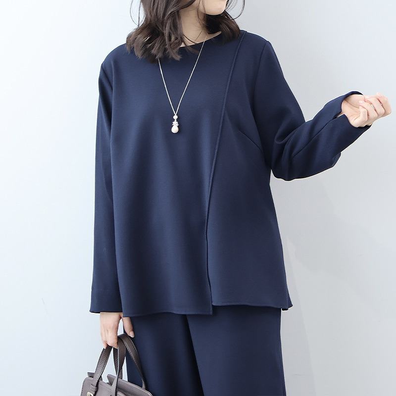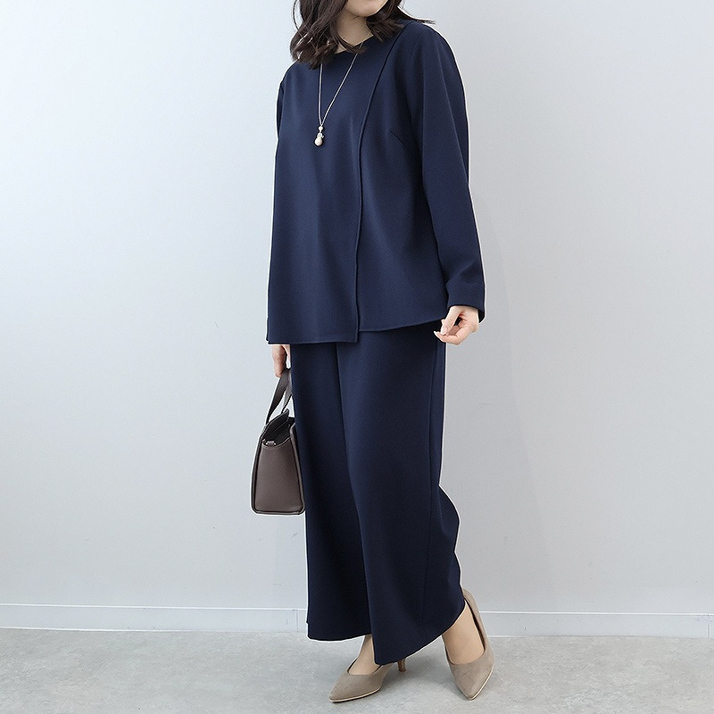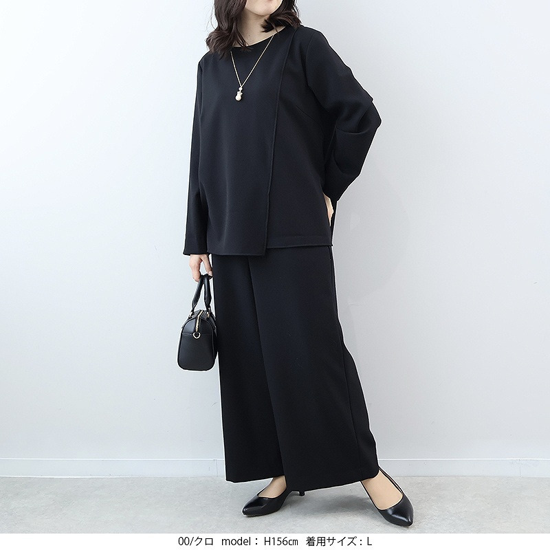 【セットアップ・ウォッシャブル】コンパクトカルゼアシメ切替えブラウス