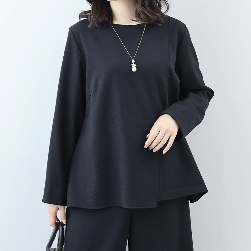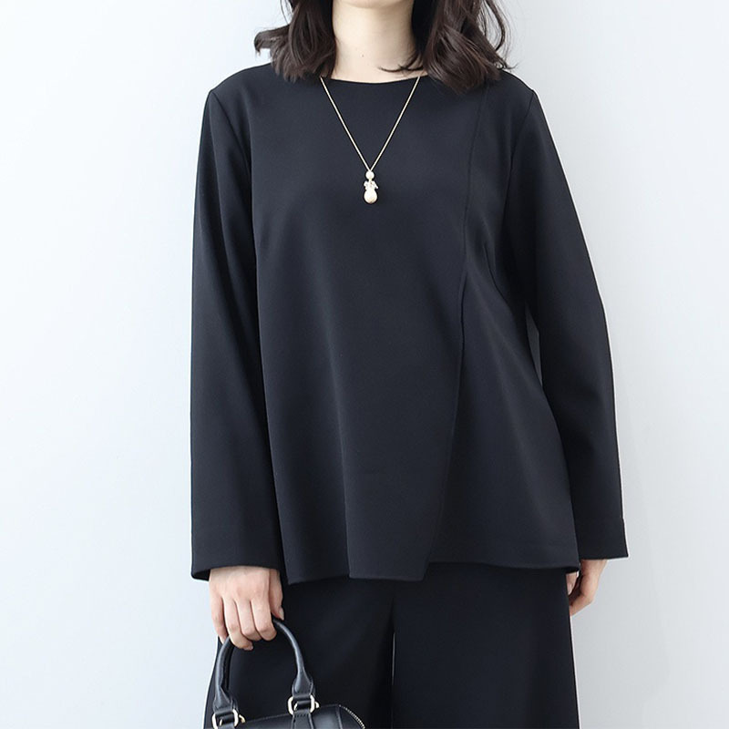 シンプルながらも洗練されたディテールが光る、アシンメトリーデザインのブラウスです。