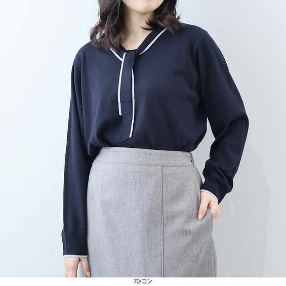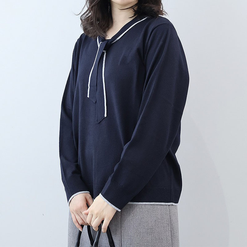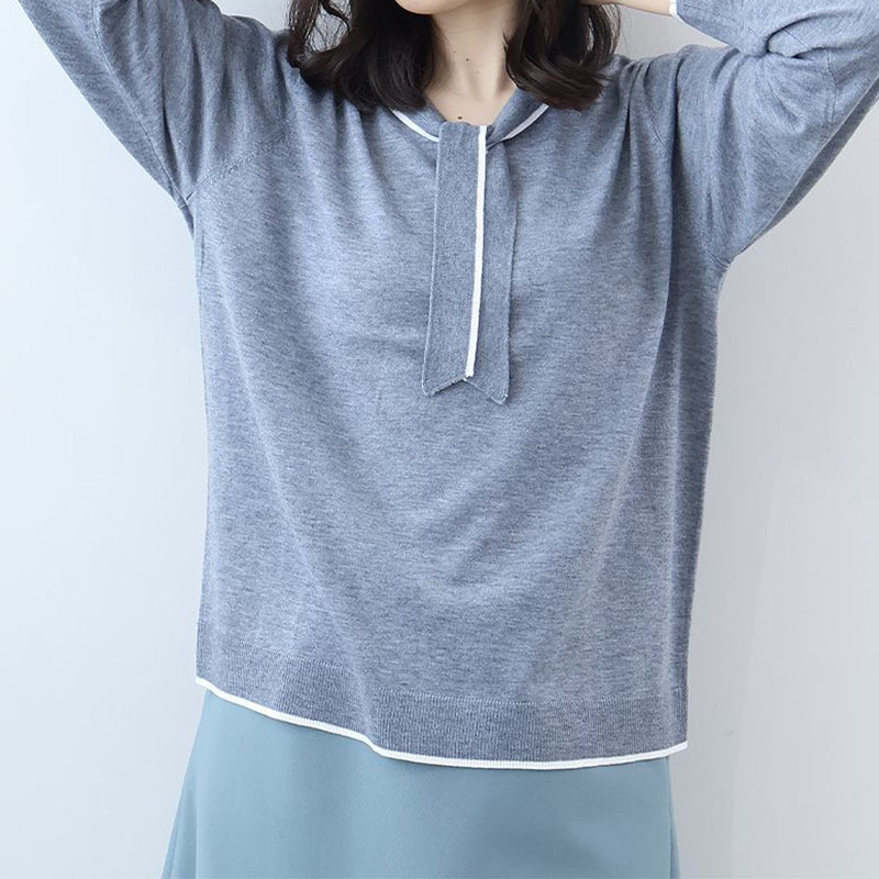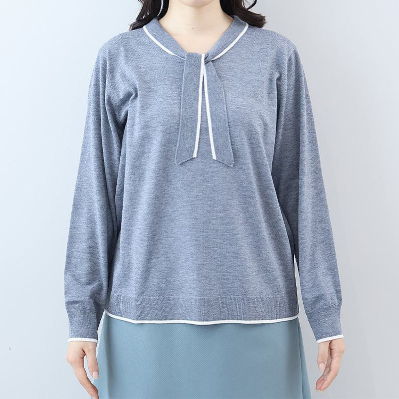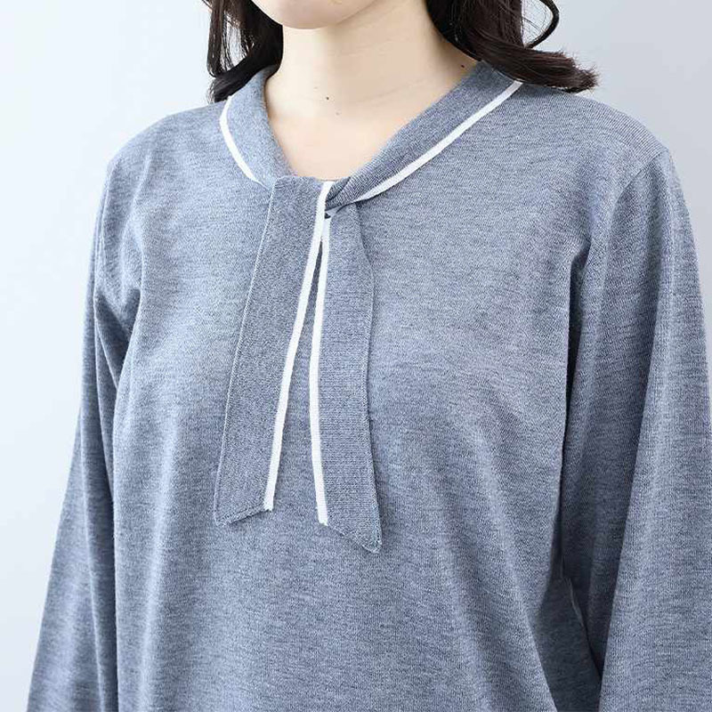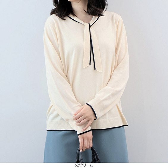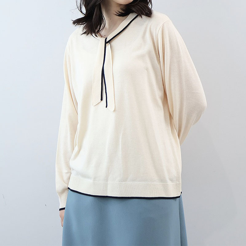 ボウタイが上品なアクセントになる、クラシカルなニットプルオーバーです。
