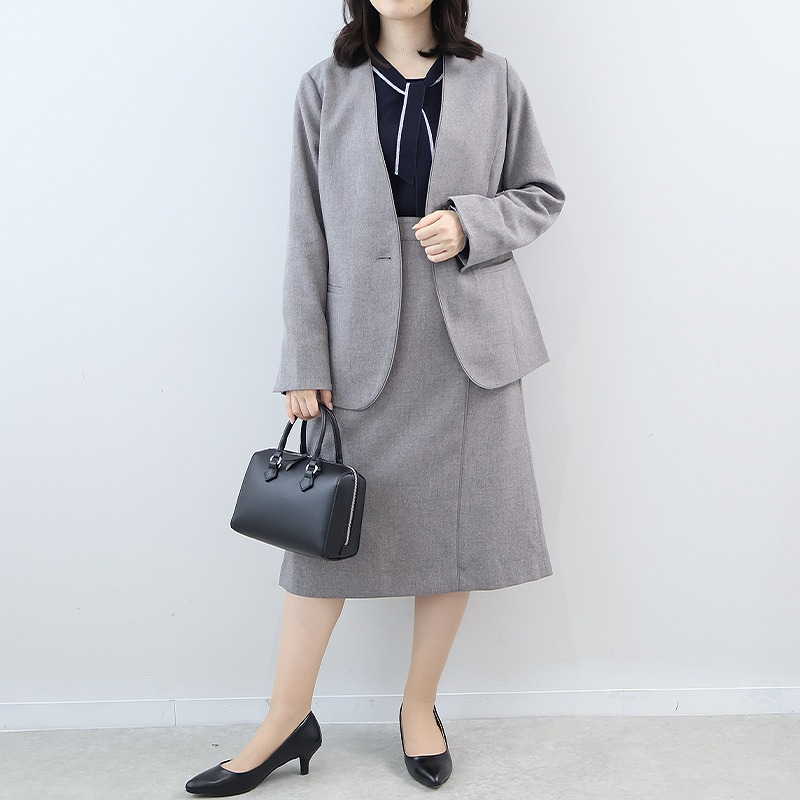 ジャケットやカーディガンのインナーとしても、ボウタイが胸元のアクセントに。