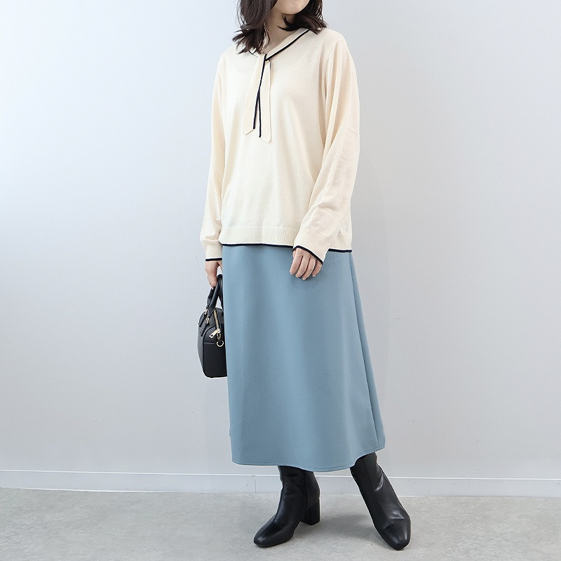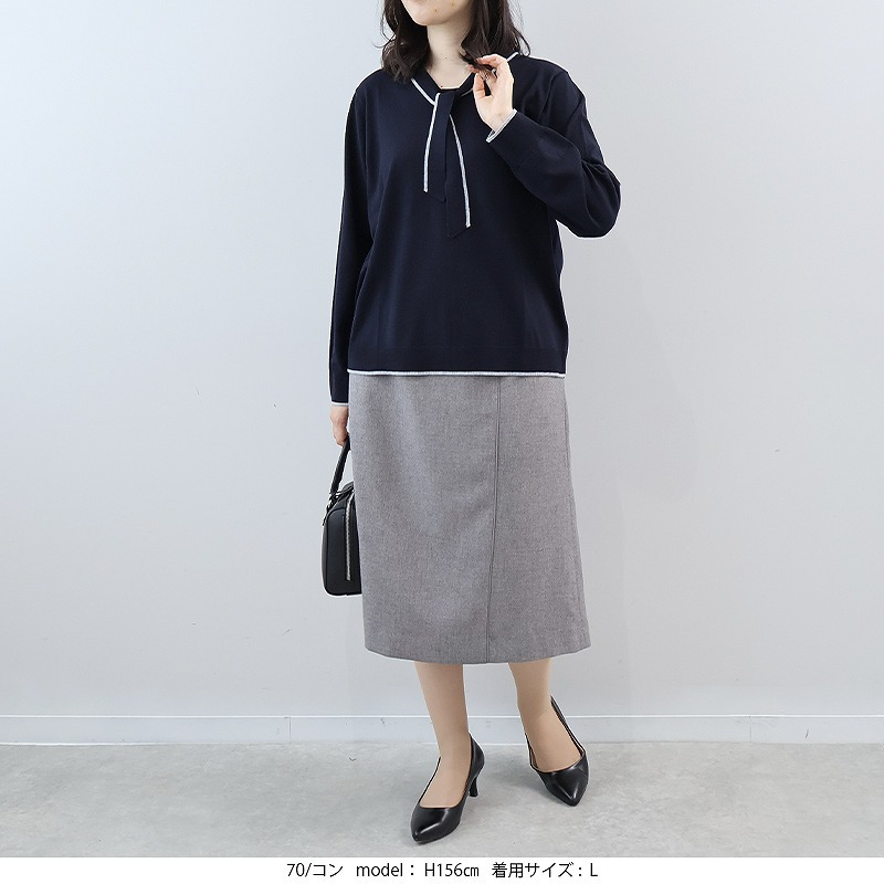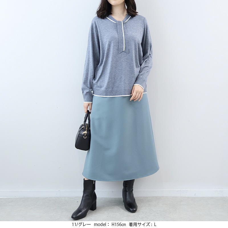 薄手のニットですっきり着用いただけます。