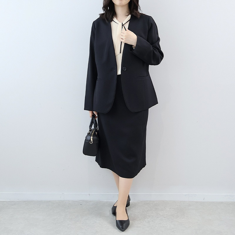 顔まわりをすっきりと見せるVネックと控えめなボウタイのデザインが、大人の女性にふさわしいエレガントさを演出。