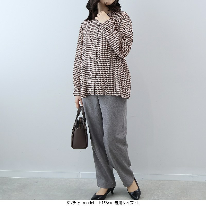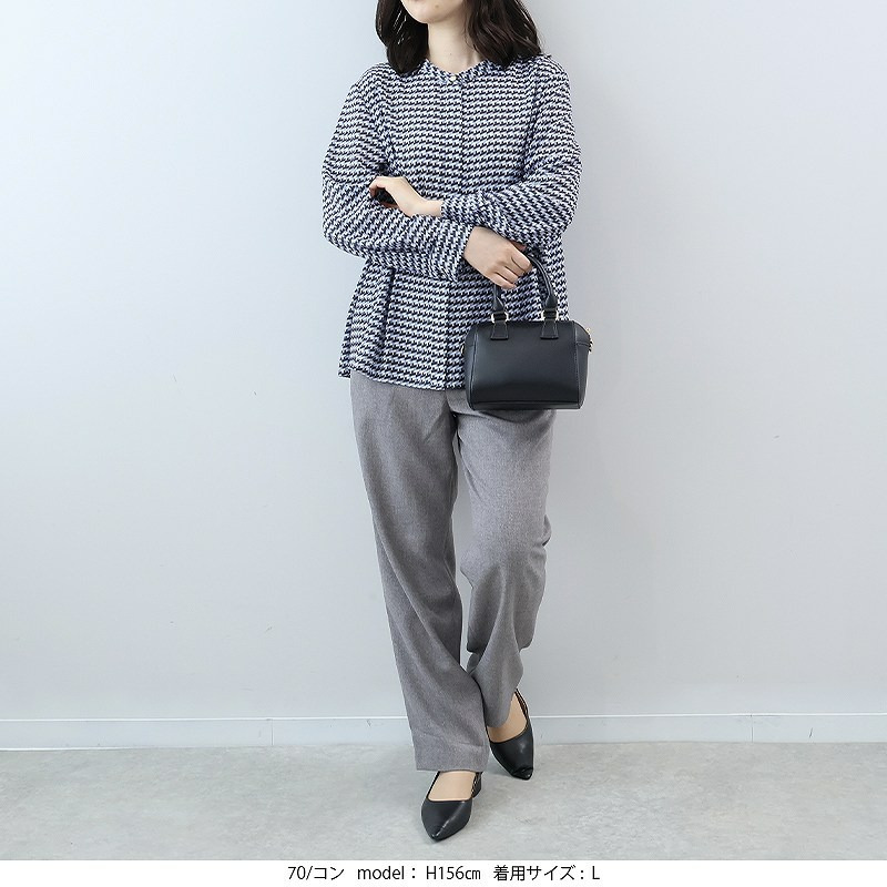 セットインスリーブと長袖のクラシックなデザインで、きちんと感がありながらも女性らしさを感じる1枚です。