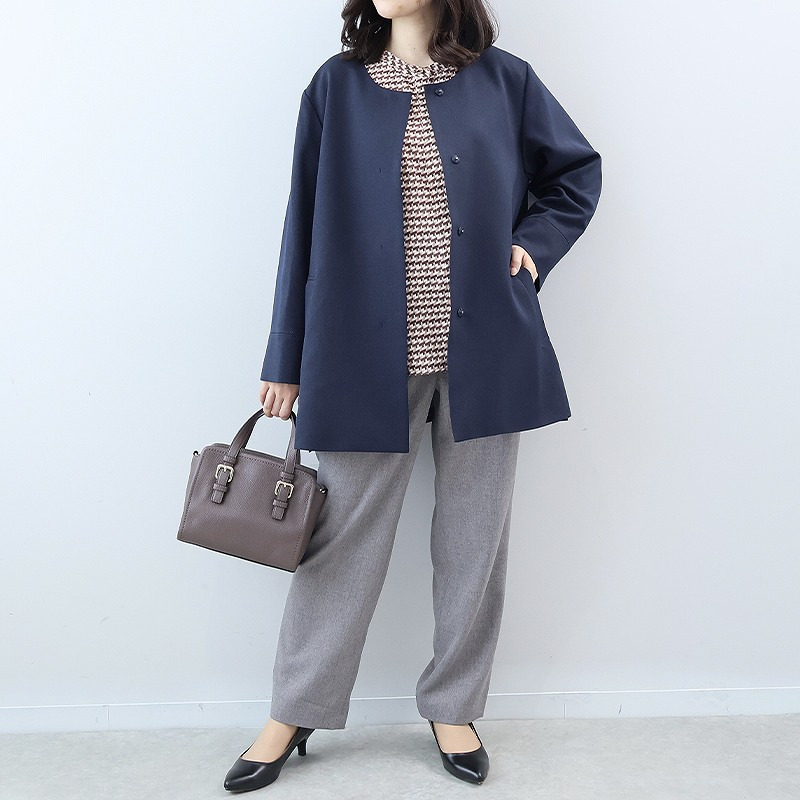 通勤やオフィスカジュアルに欠かせない、頼れる1着です。